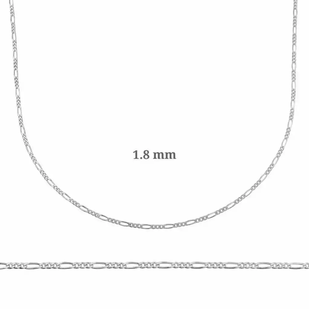 1.8 mm Gümüş Figaro Zincir - 0.50 mikron