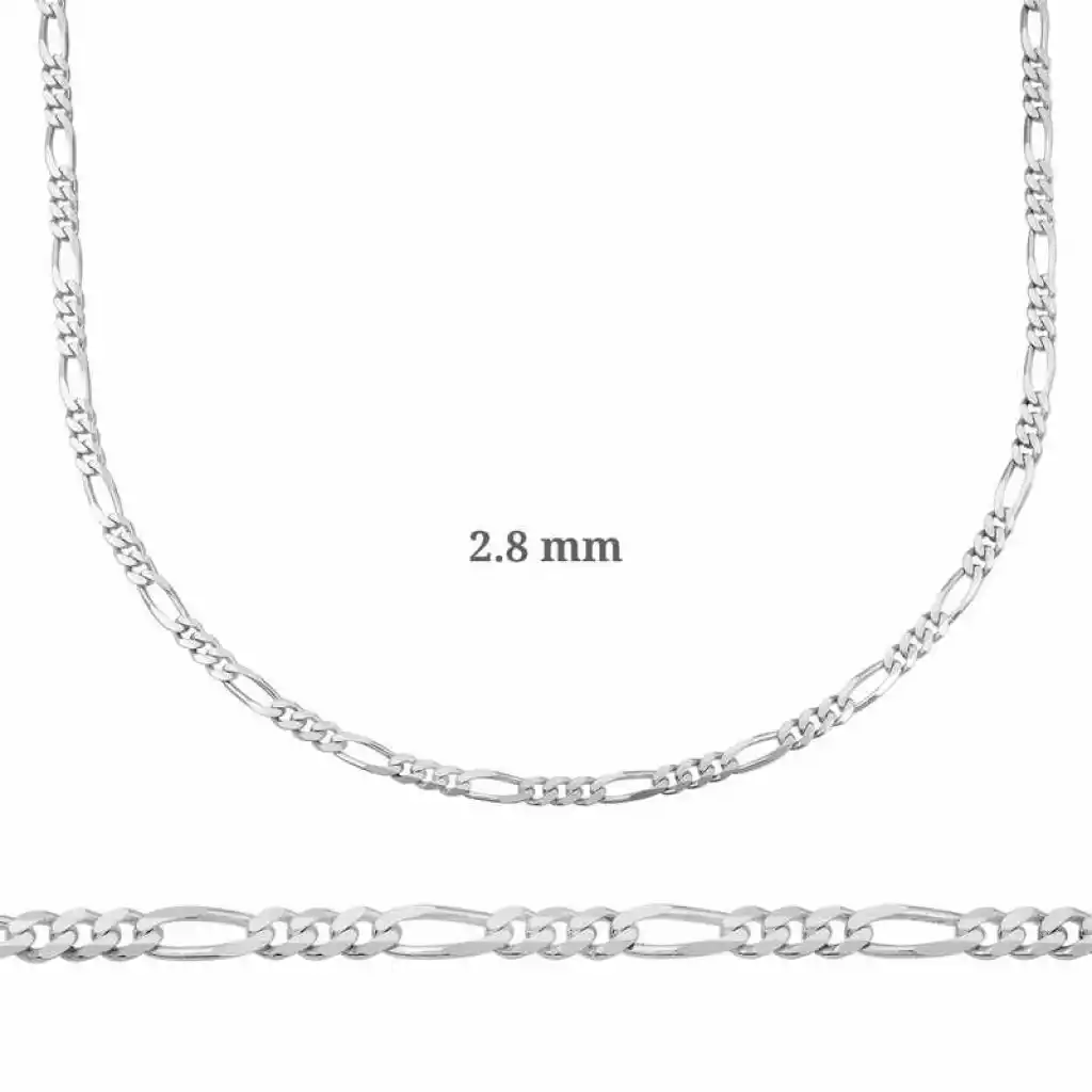 2.8 mm Gümüş Figaro Zincir - 0.80 mikron