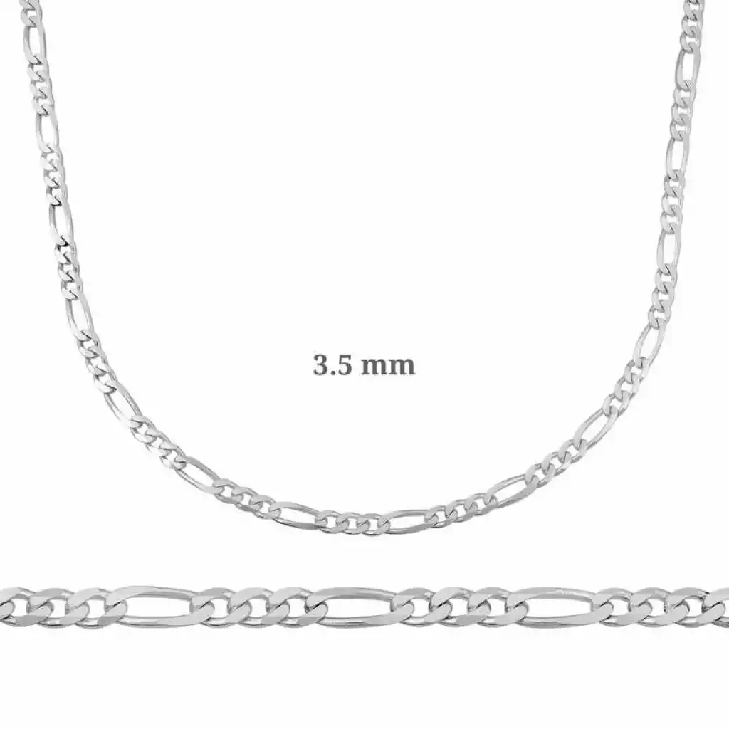 3.5 mm Gümüş Figaro Zincir - 100 mikron