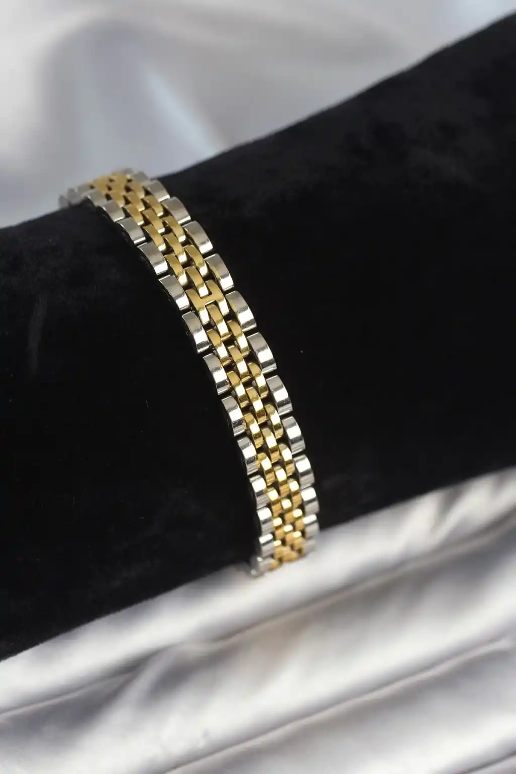 316L Çelik 9 mm Kalınlıkta Gold ve Gümüş Renkli Erkek Bileklik