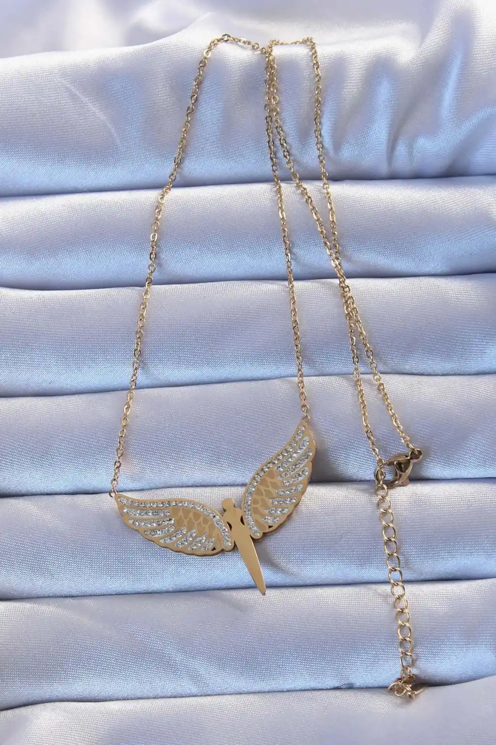 316L Çelik Altın Renk Zirkon Taşlı Mikail Kolye