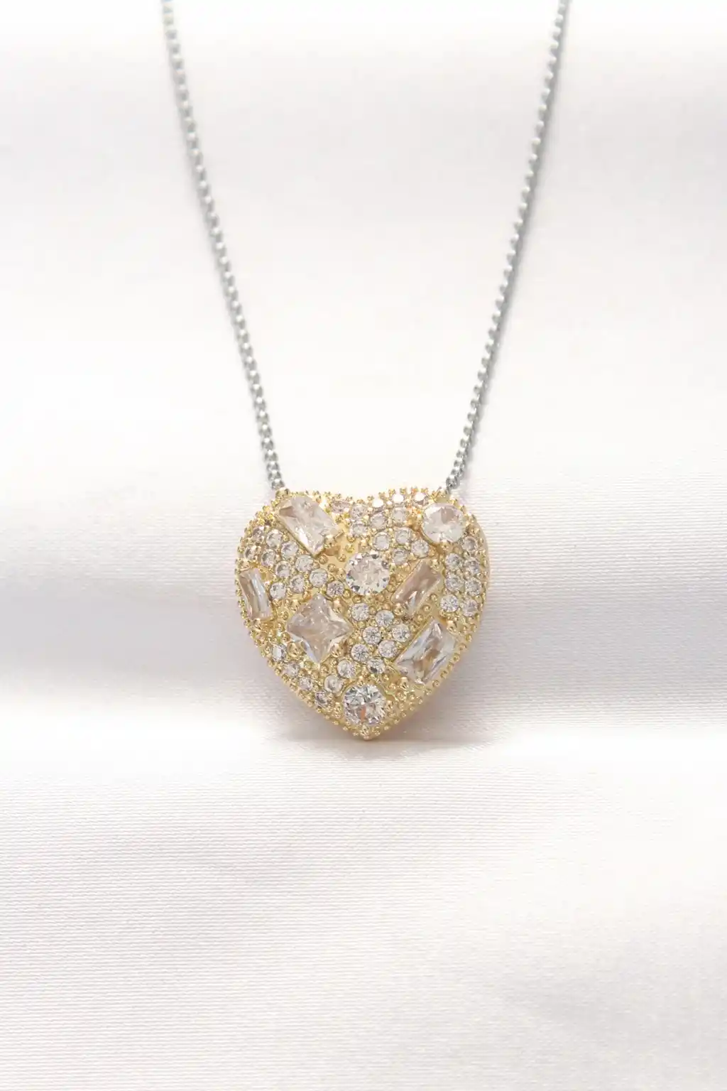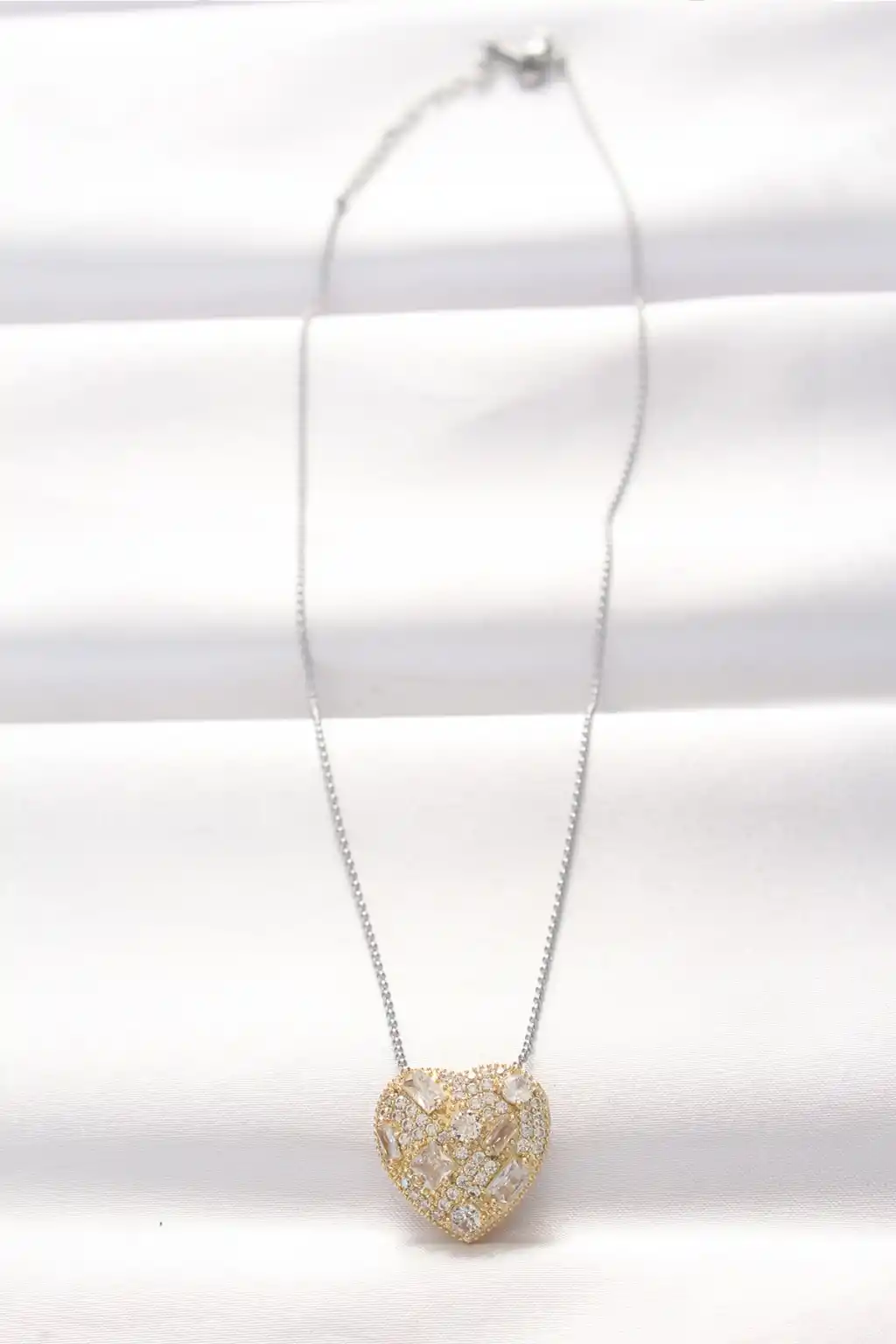316L Çelik Çift Renk Zirkon Taşlı Kalp Kolye