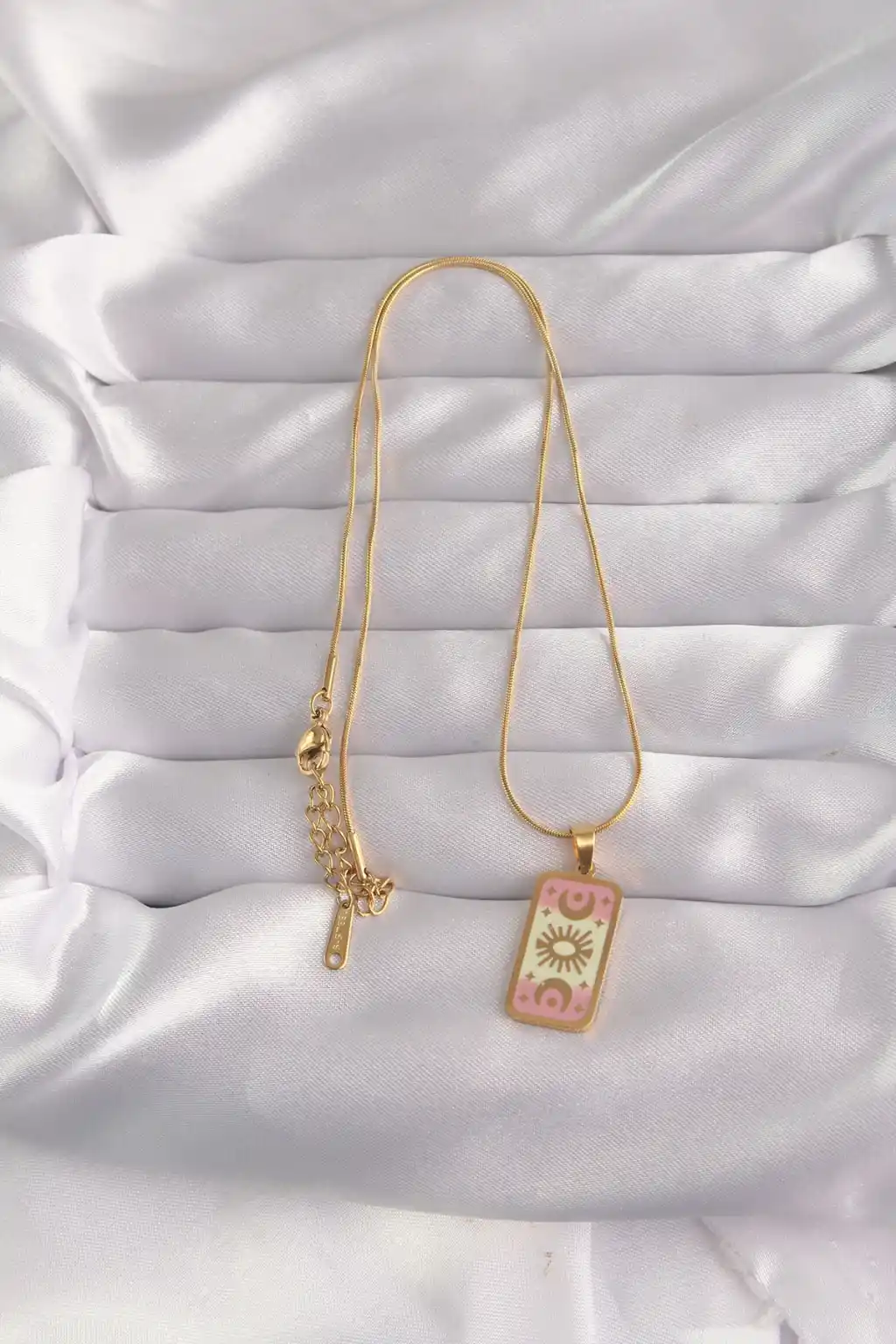 316L Çelik Gold Renk Karışık Mineli Ay Figür Tarot Kolye
