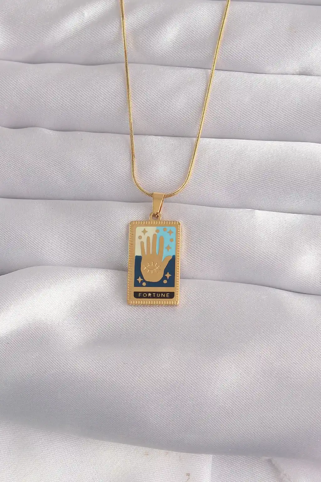 316L Çelik Gold Renk Karışık Mineli El Figür Tarot Kolye