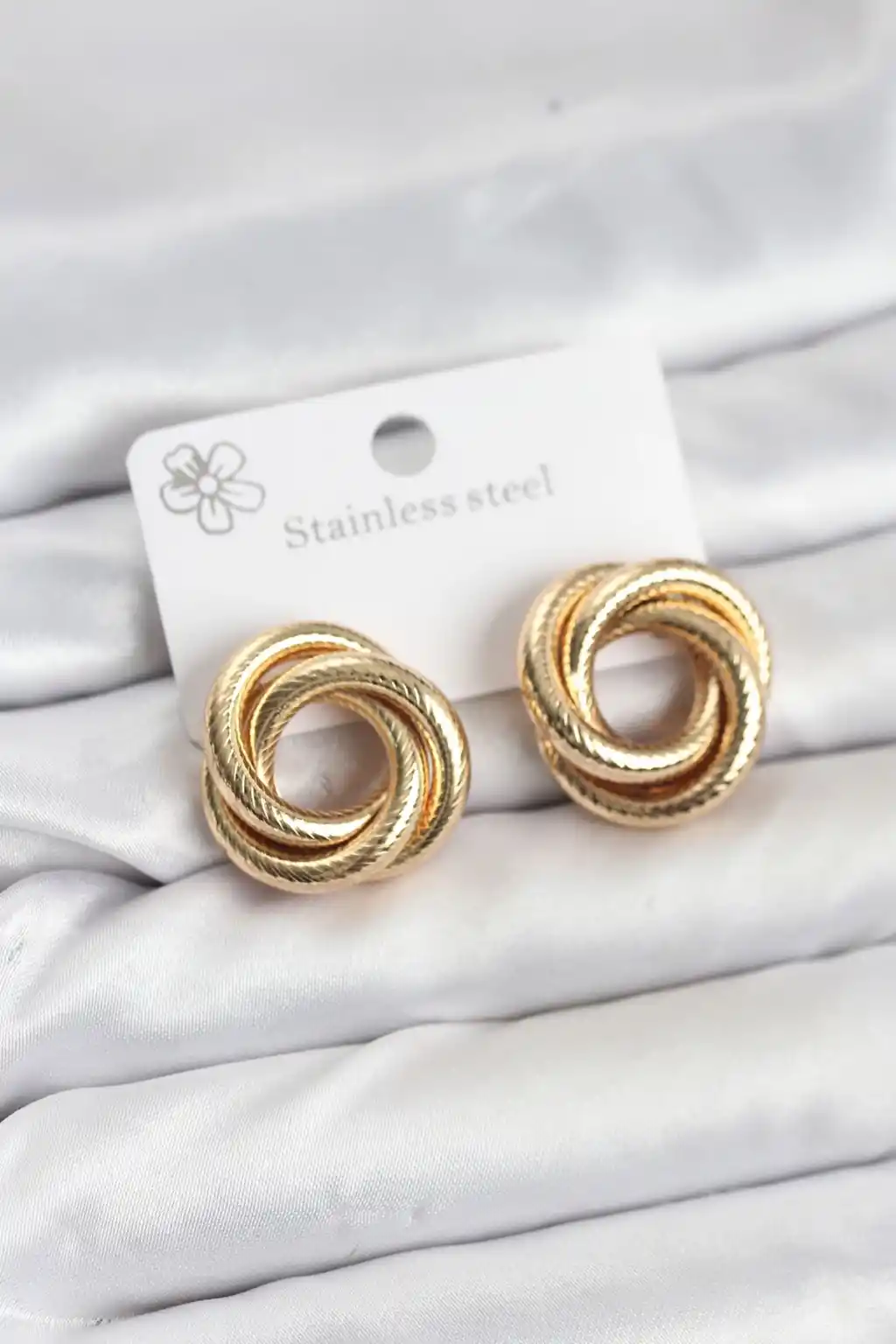 316L Çelik Gold Renk Lazerli Sarmal Halka Kadın Küpe