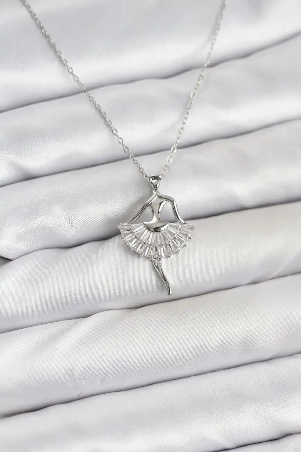 316L Çelik Gümüş Renk Balerin Model Kadın Kolye