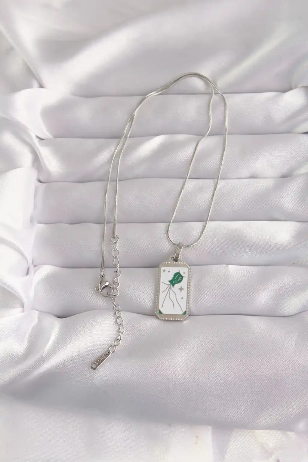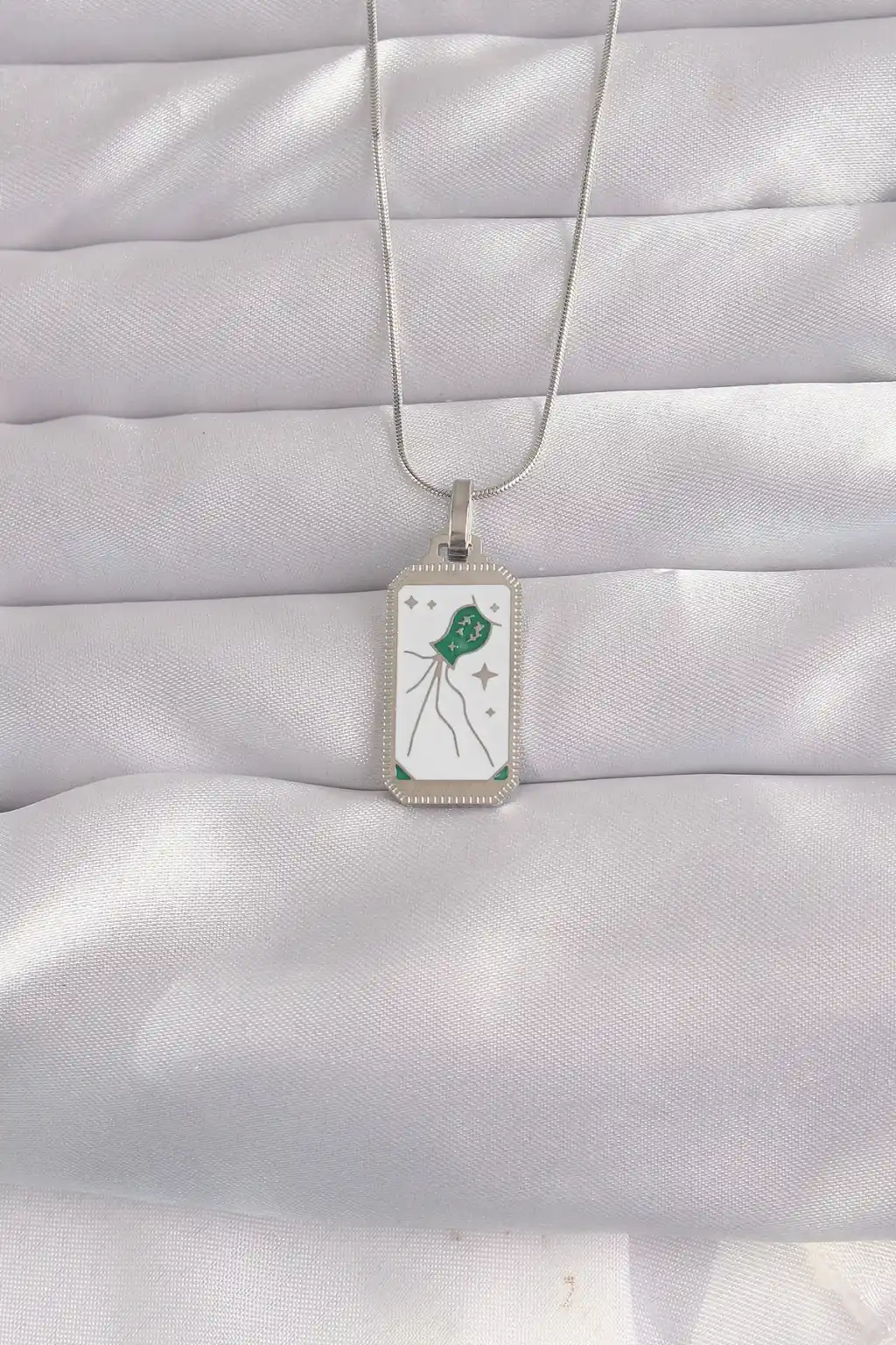316L Çelik Gümüş Renk Beyaz Mineli Tarot Kolye