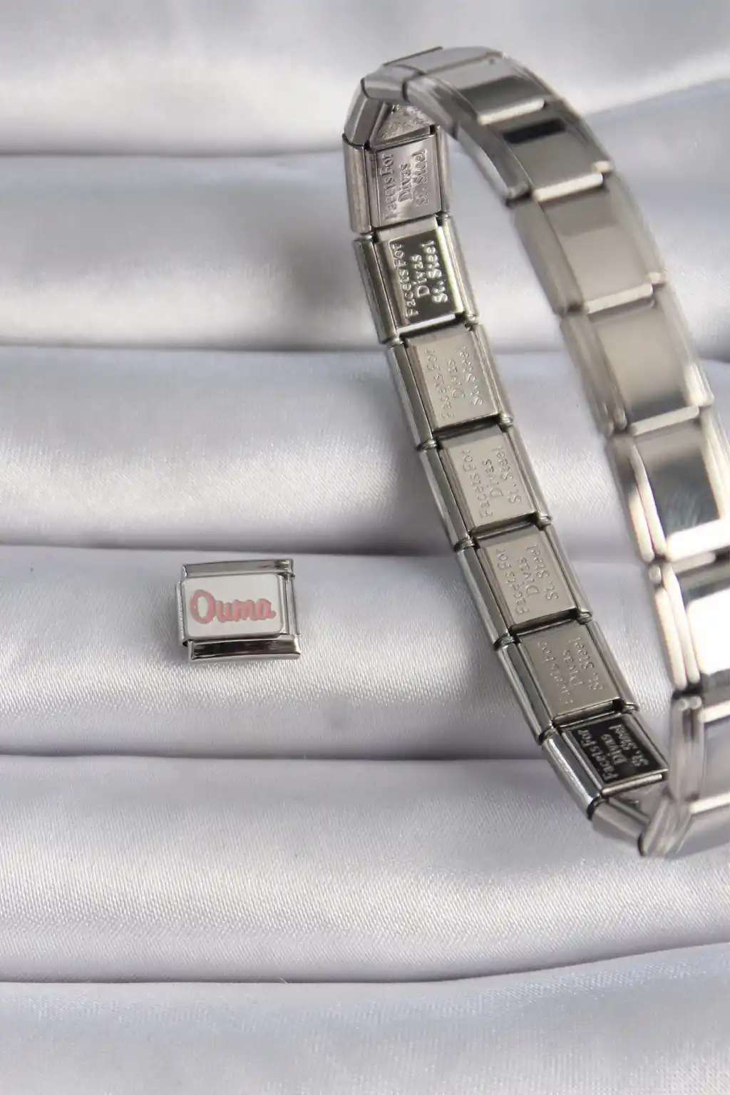316L Çelik Gümüş Renk Beyaz Pembe Ouma İşlemeli Nomination Charm