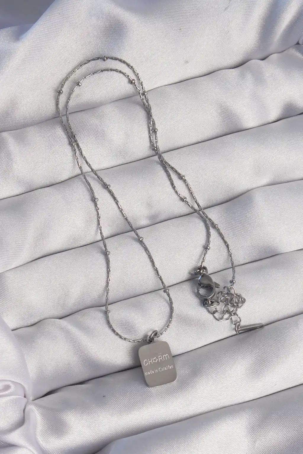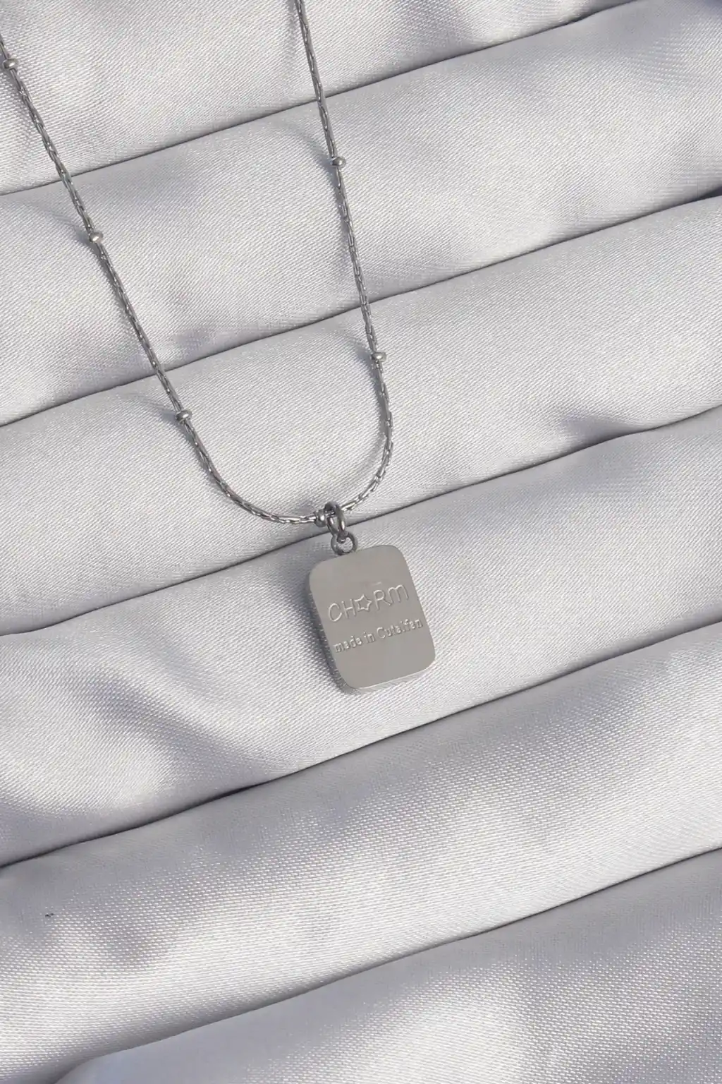316L Çelik Gümüş Renk Kare Charm Model Kolye