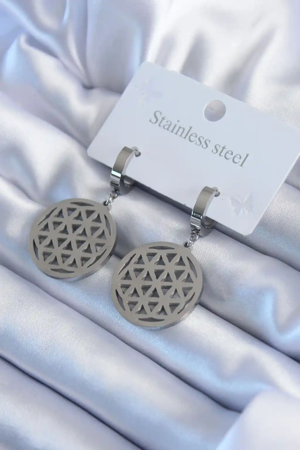 316L Çelik Gümüş Renk Lotus Model Kadın Küpe
