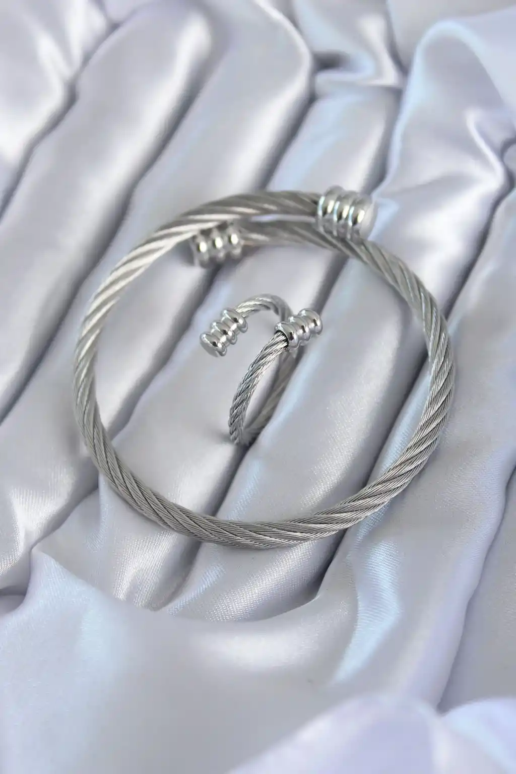316L Çelik Gümüş Renk Sarmal Model Erkek Bileklik Yüzük Kombini