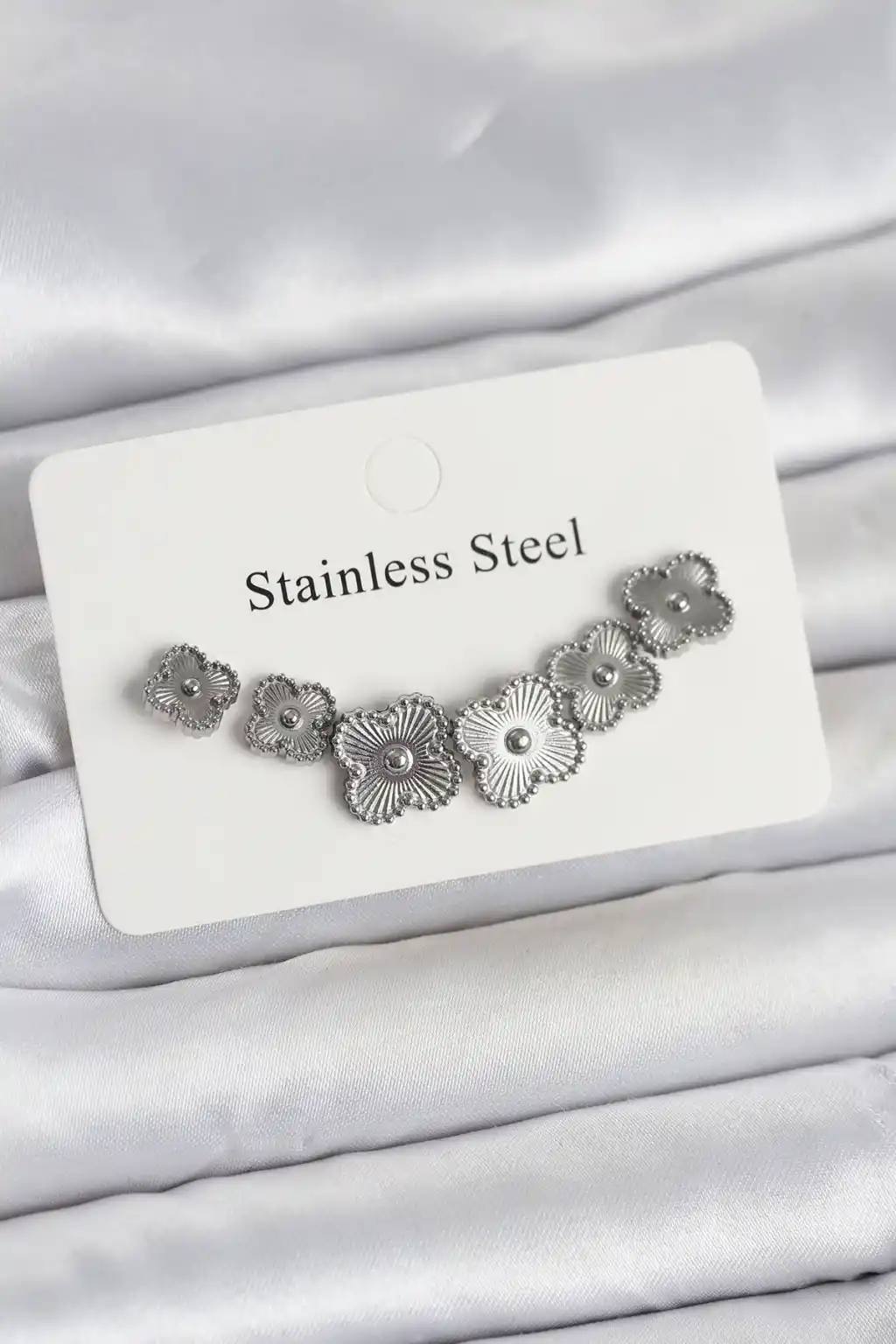316L Çelik Gümüş Renk Yonca Küpe Seti