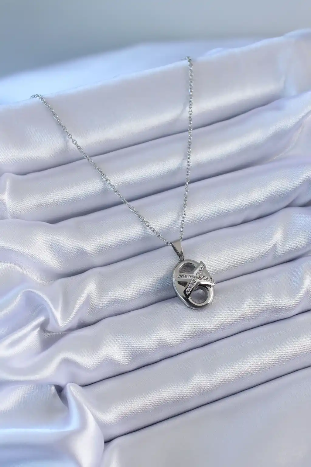 316L Çelik Gümüş Renk Zirkon Taşlı Kadın Kolye