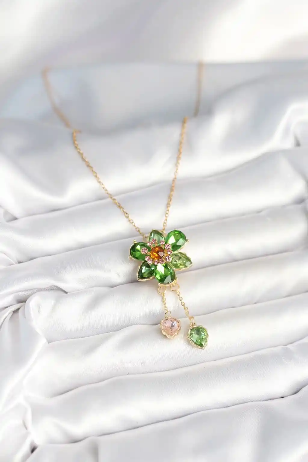316L Çelik Zincirli Yeşil Çiçek Model Kadın Kolye