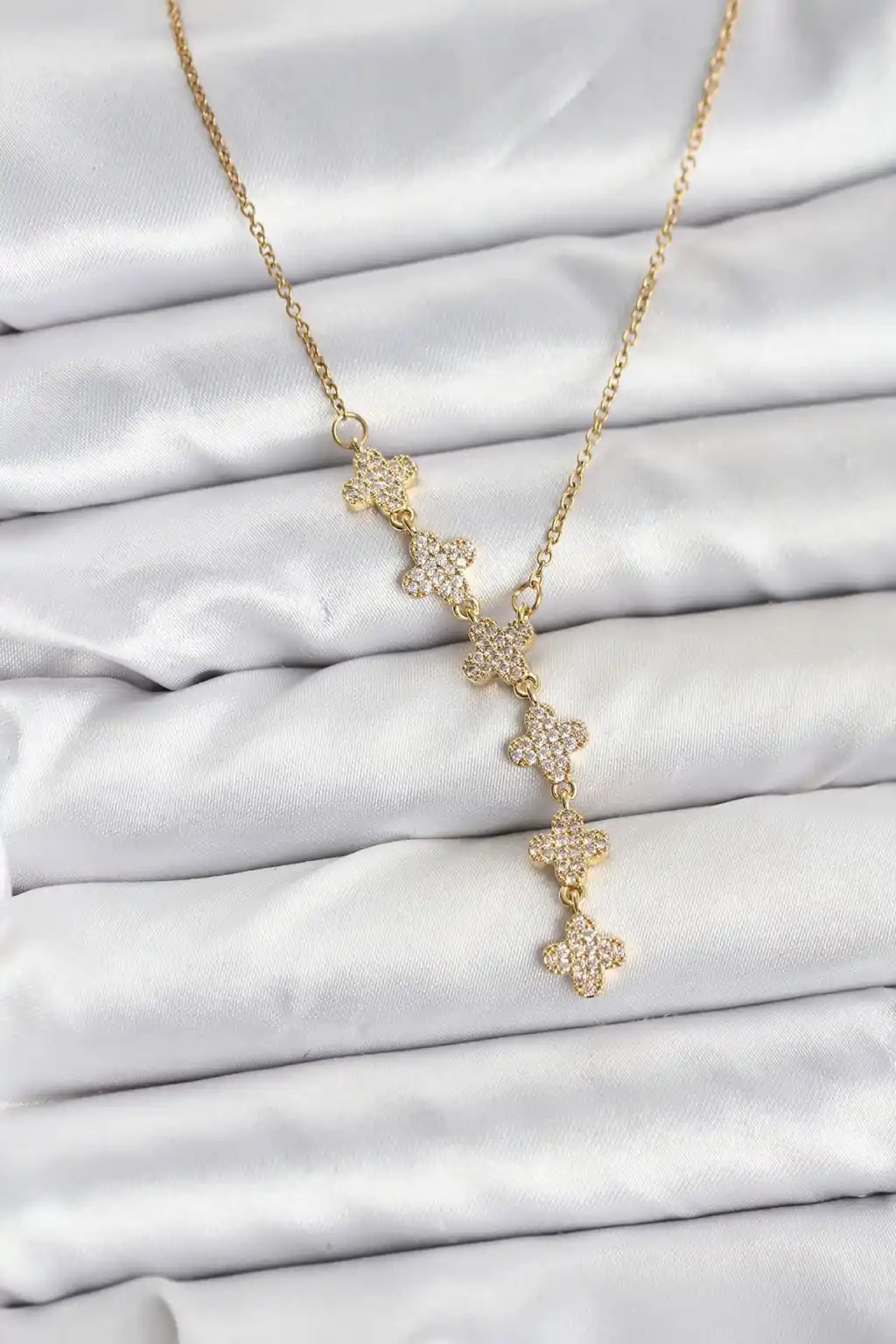 316L Çelik Zincir Gold Renk Yonca Model Kadın Kolye