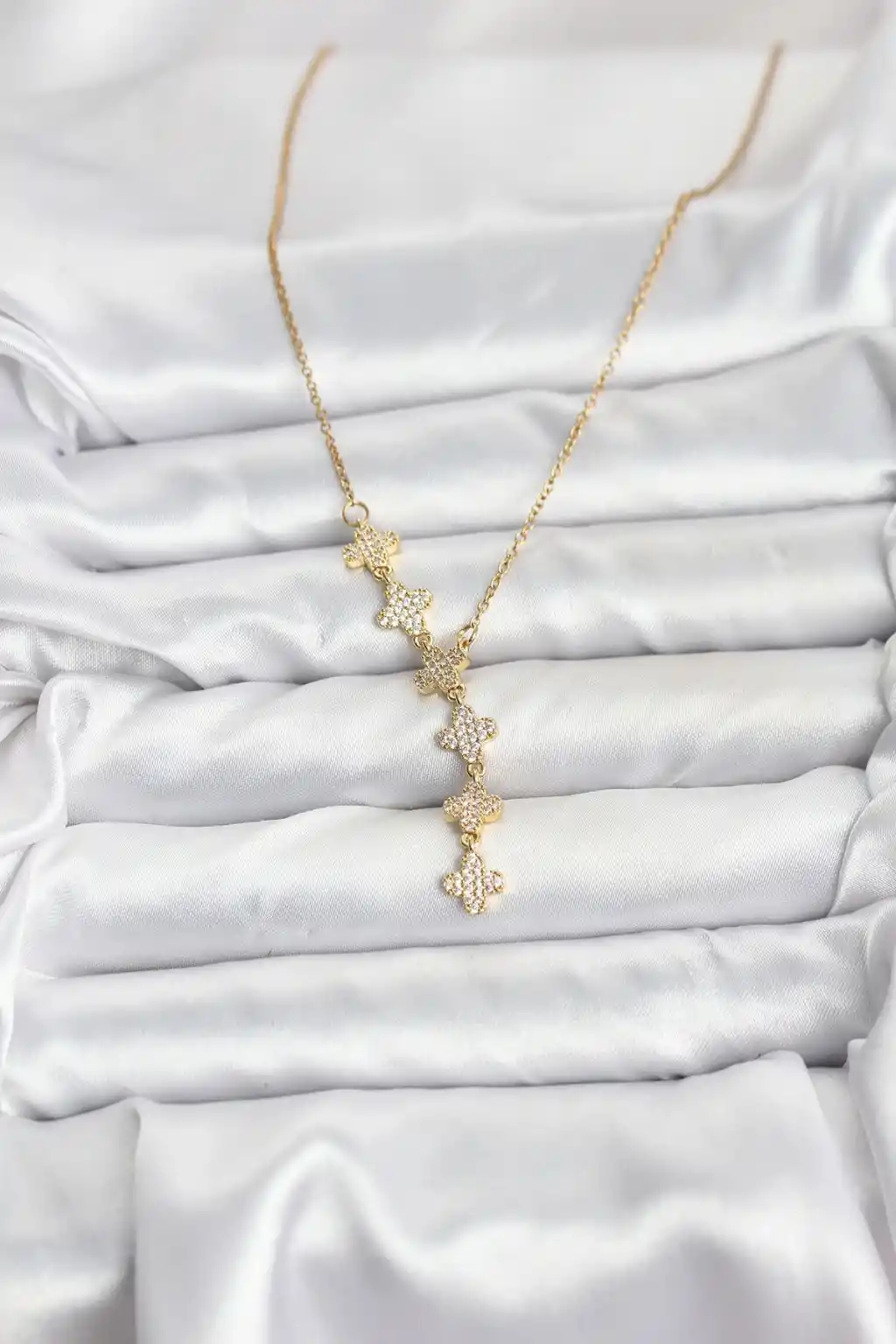 316L Çelik Zincir Gold Renk Şans Kolyesi Model Zirkon Taşlı Kadın Kolye