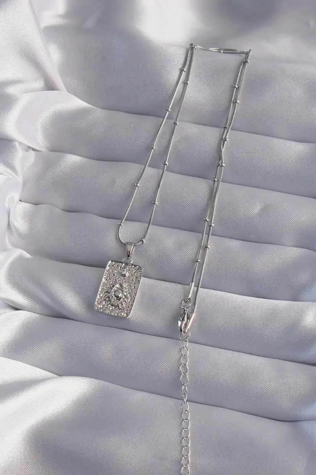 Pirinç Gümüş Renk Minimal Charmlı Kadın Kolye