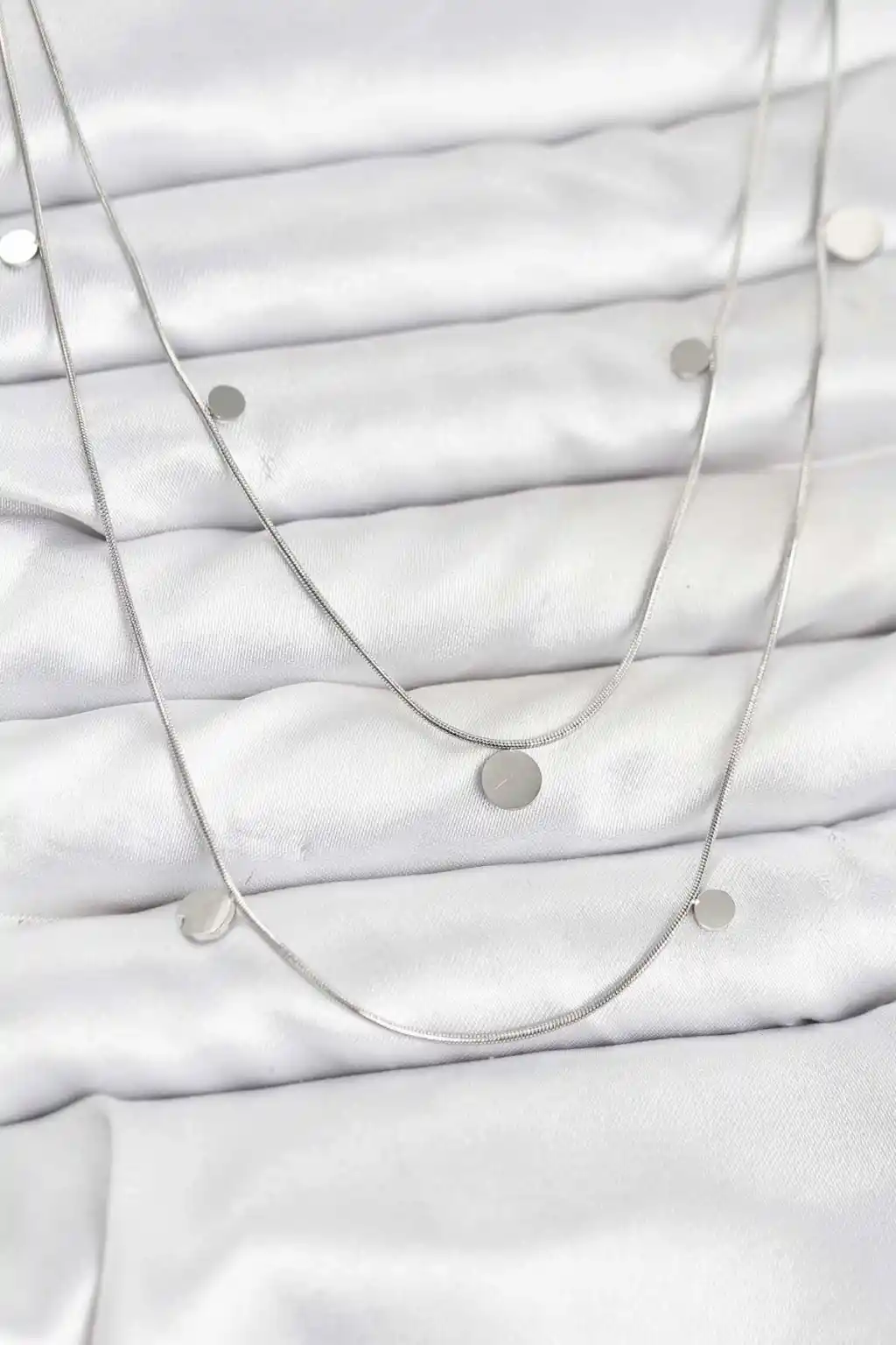 316L Çelik Zincir Gümüş Renk Pullu Kadın Kolye