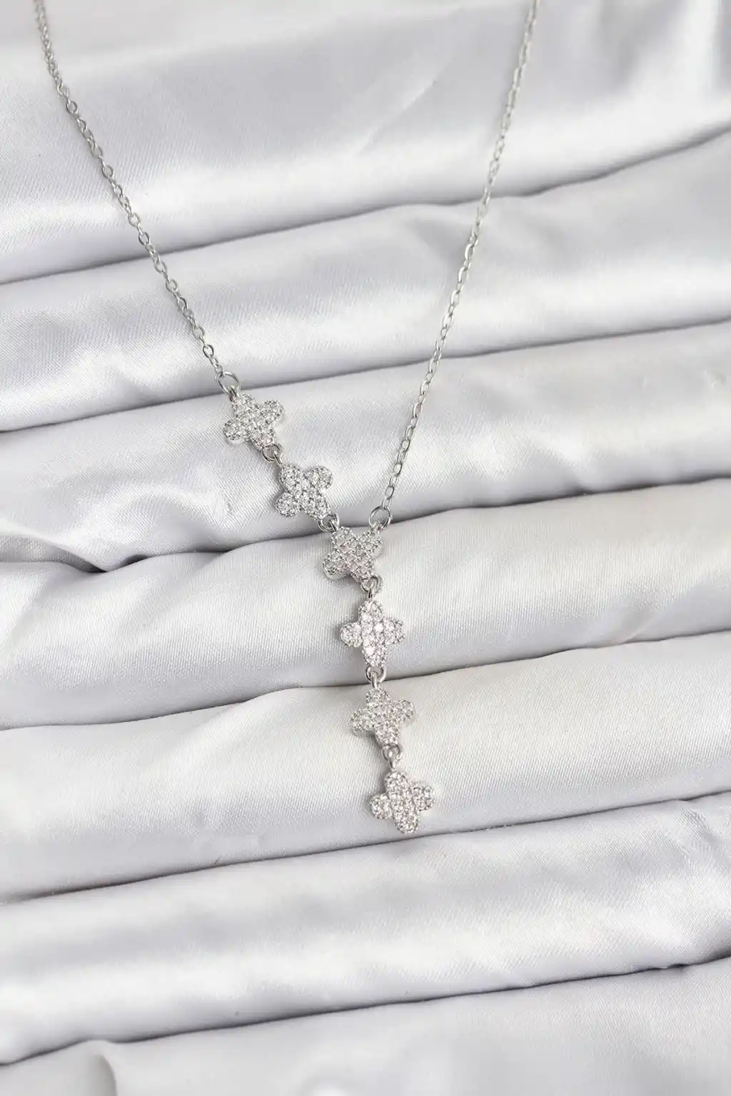 316L Çelik Zincir Gümüş Renk Şans Kolyesi Model Zirkon Taşlı Kadın Kolye