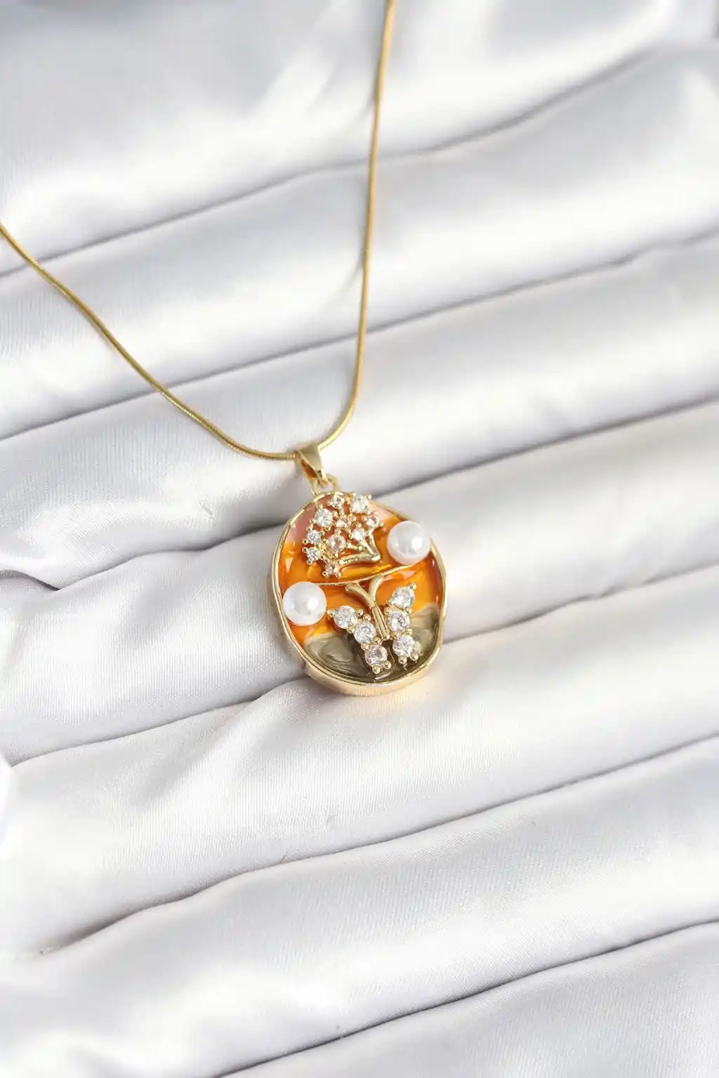 Pirinç Gold Renk Zirkon Taşlı Kadın Kolye