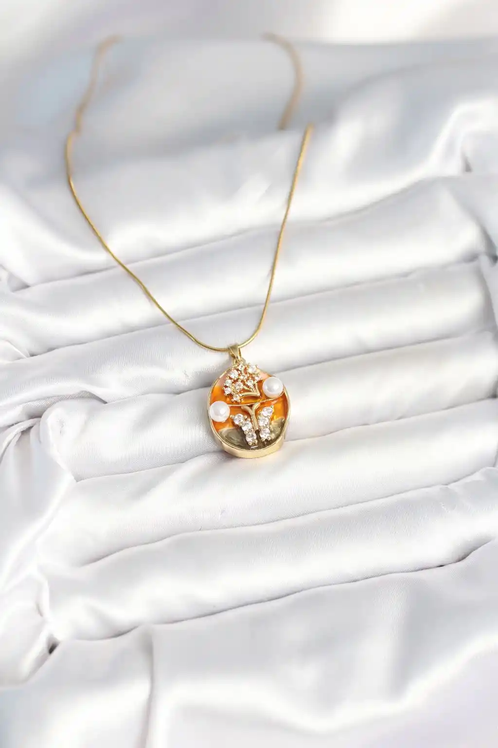 316L Çelik Zincir Gold Renk Çiçek Model Sallantılı Kadın Kolye
