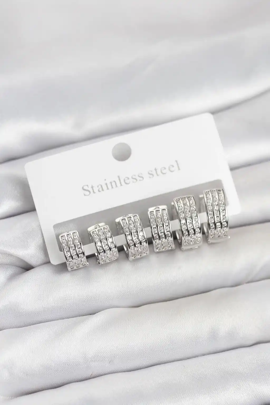 316L Çelik Zirkon Taşlı Gümüş Renk Halka Küpe Seti