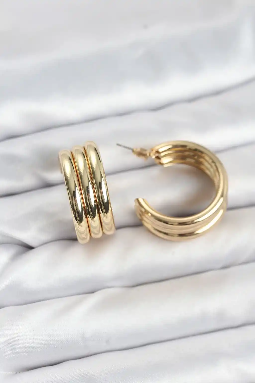 3'lü Görünüm 316L Çelik Gold Renk Kadın Küpe