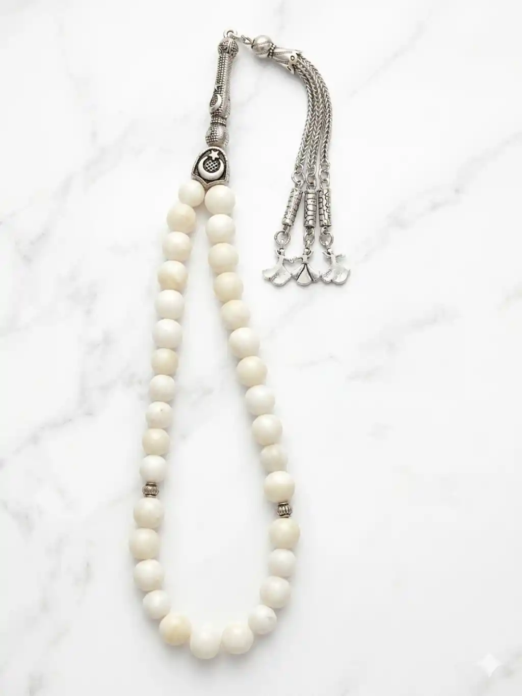 Doğanın en saf enerjisini taşıyan beyaz sedef, Mevlevi ruhunu yansıtan özel tasarım detaylarıyla bir araya geldi. 8 mm ideal dane boyutuyla hem elde akıcı bir çekim sunar hem de şık bir aksesuar olarak her tarza uyum sağlar.