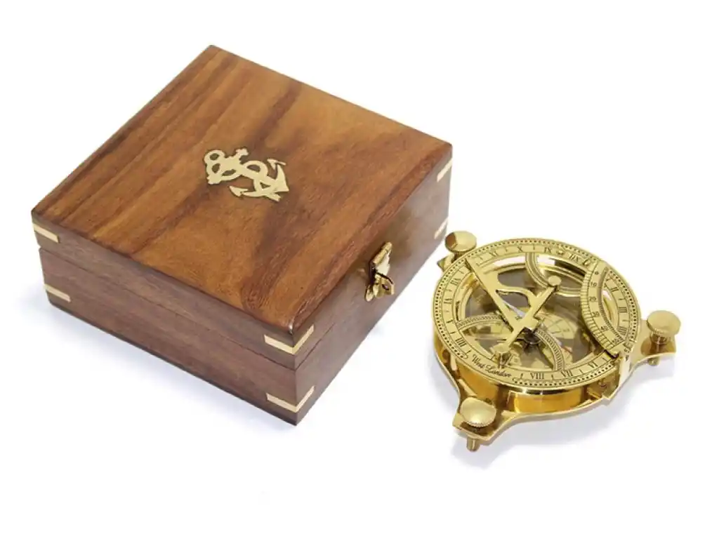 Ahşap Kutulu El Yapımı Pirinç Güneş Saati Ve Pusula 15640