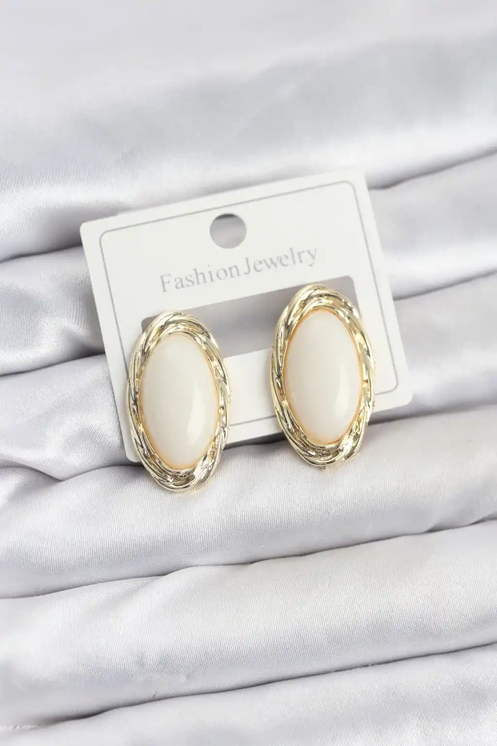 Beyaz Badem Model Vintage Kadın Küpe