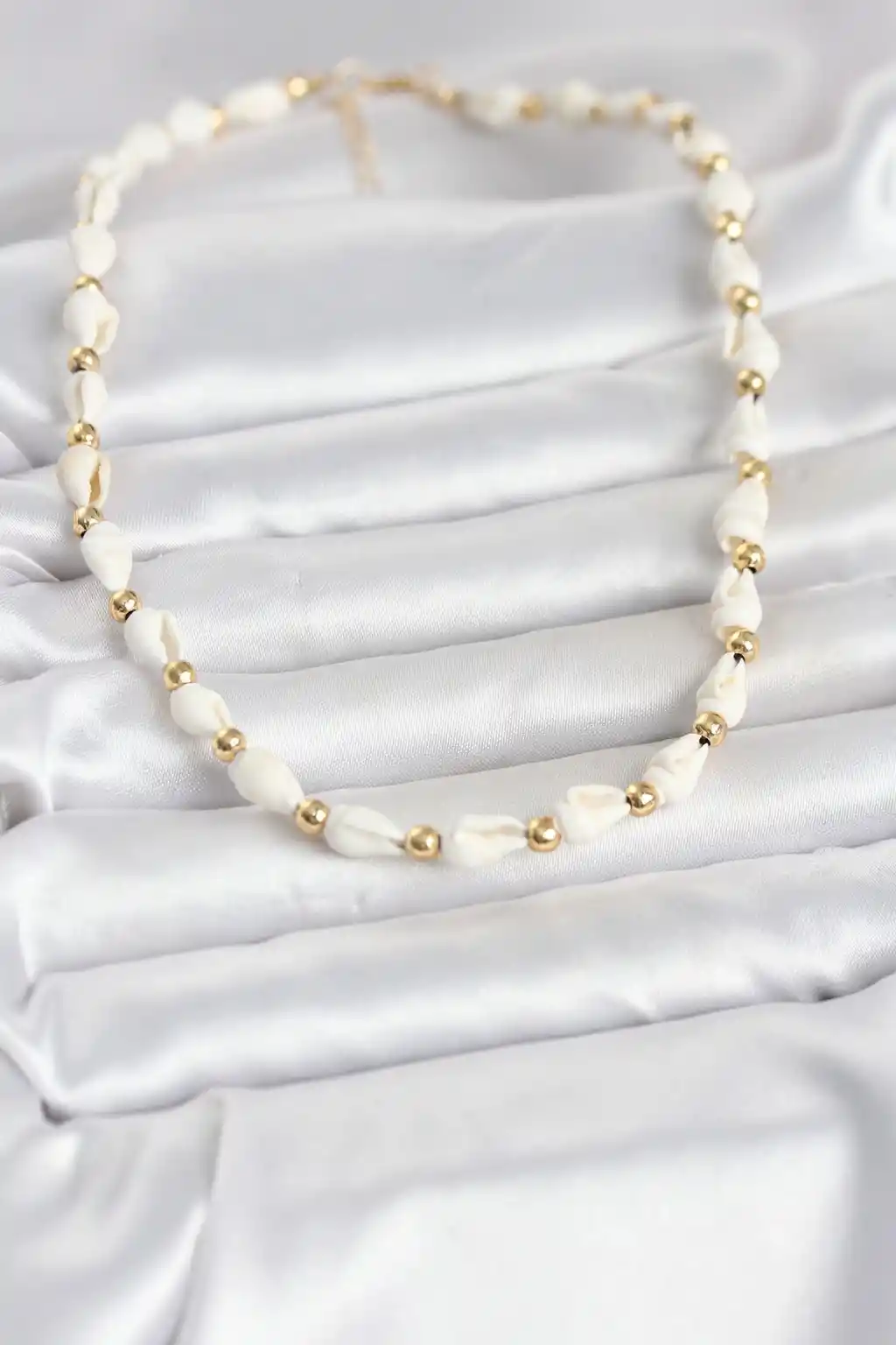Beyaz Doğal Deniz Kabuğu Dizi Kadın Kolye
