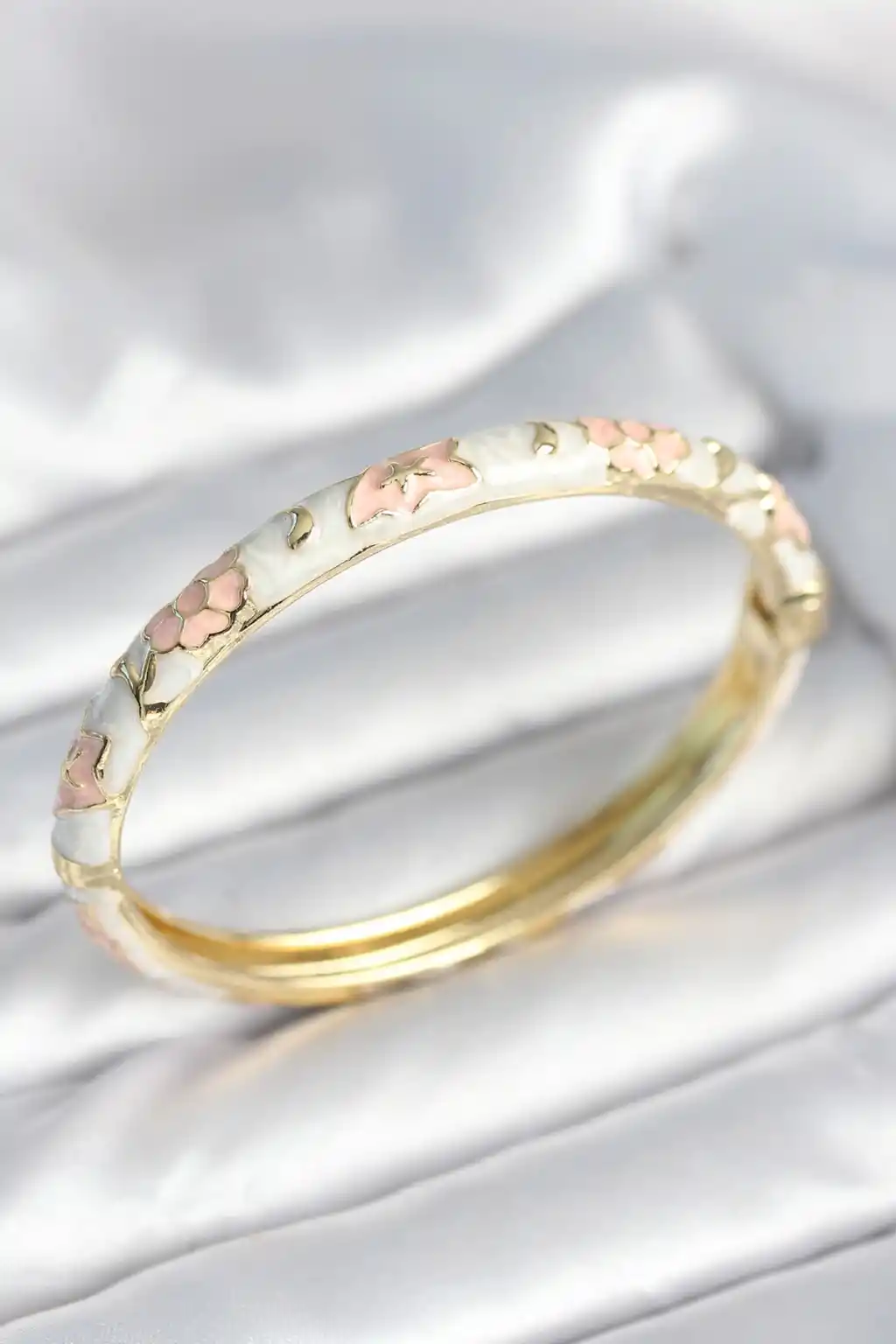 Beyaz Pembe Renk Detaylı Mineli Kelepçe