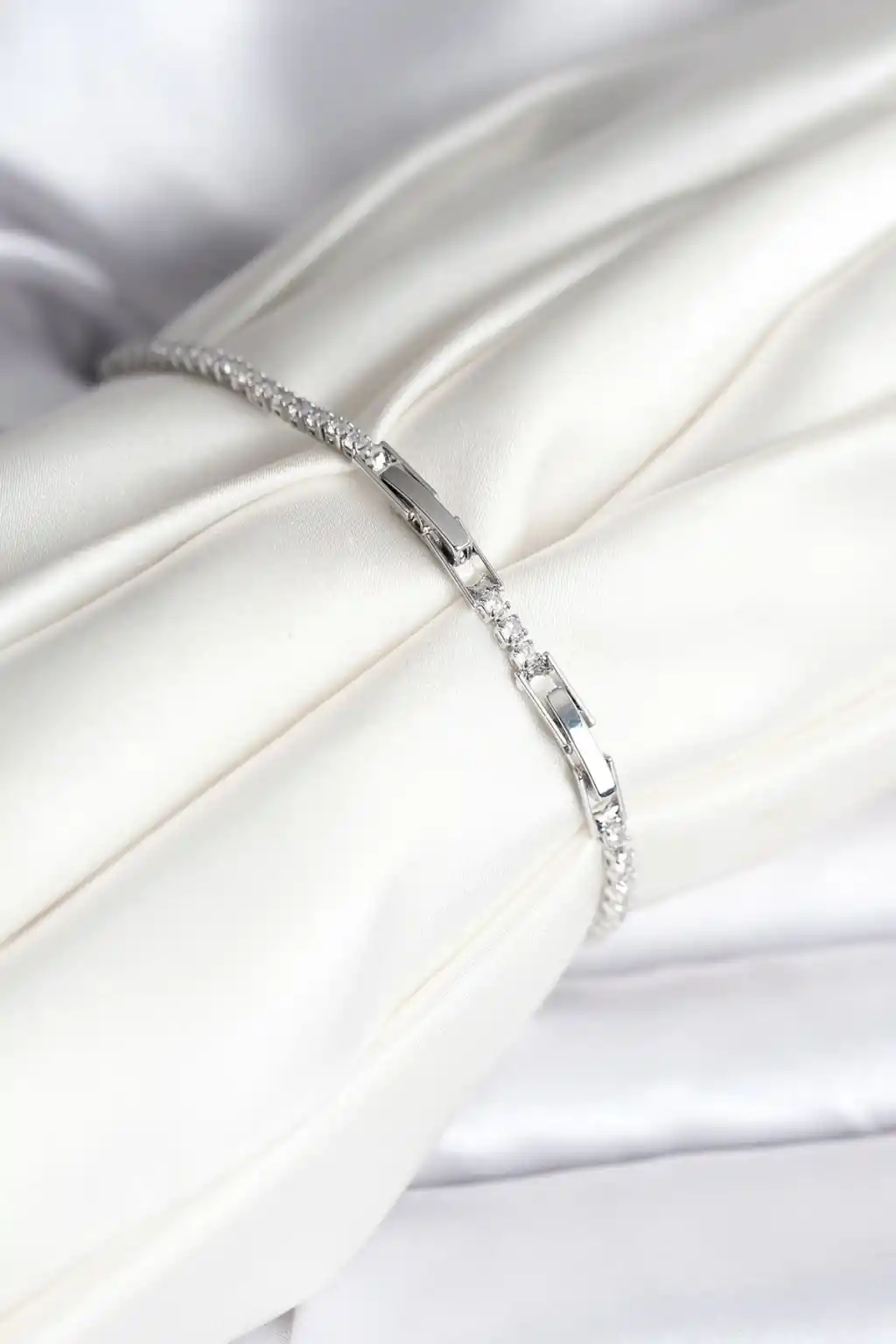 Çiçekli Model Zirkon Taşlı Gümüş Renk Su Yolu Kadın Bileklik