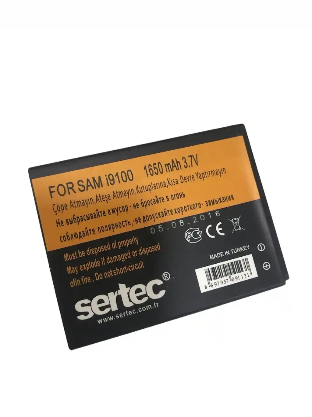 MARKA: SERTEC UYUMLU MODELLER: GALAXY S2 i9100 Uyumlu Batarya VOLTAJ: 3,7 V. KAPASİTE: 1.650 mAh. MENŞEİ: ÇİN