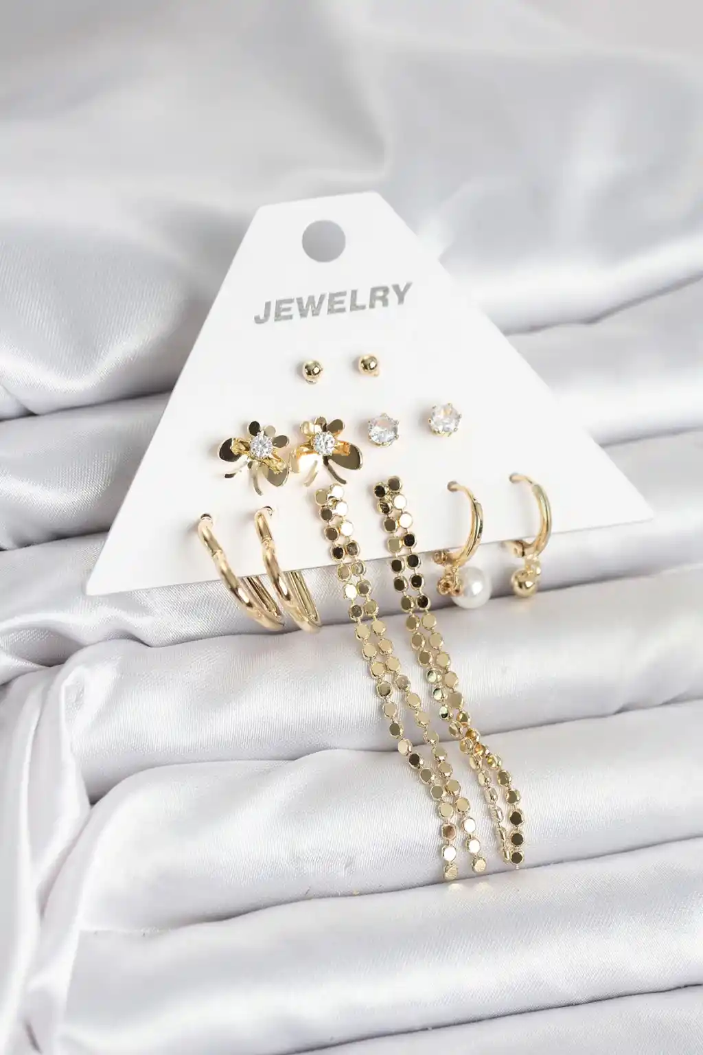 Gold Renk Pirinç 6'lı Kadın Küpe Seti