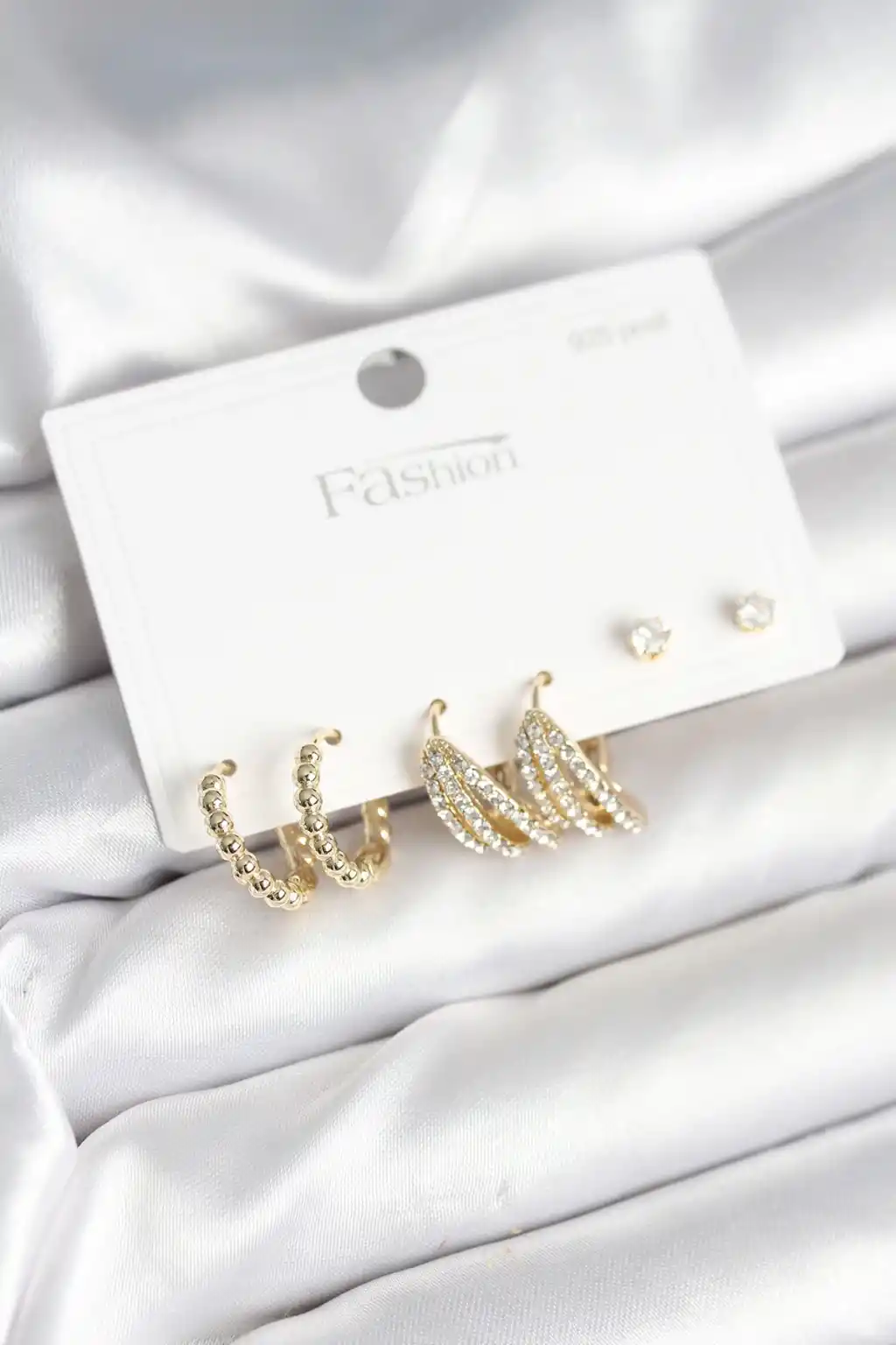 Gold Renk Pirinç 925 Ayar Gümüş Çivili Kadın Küpe Seti