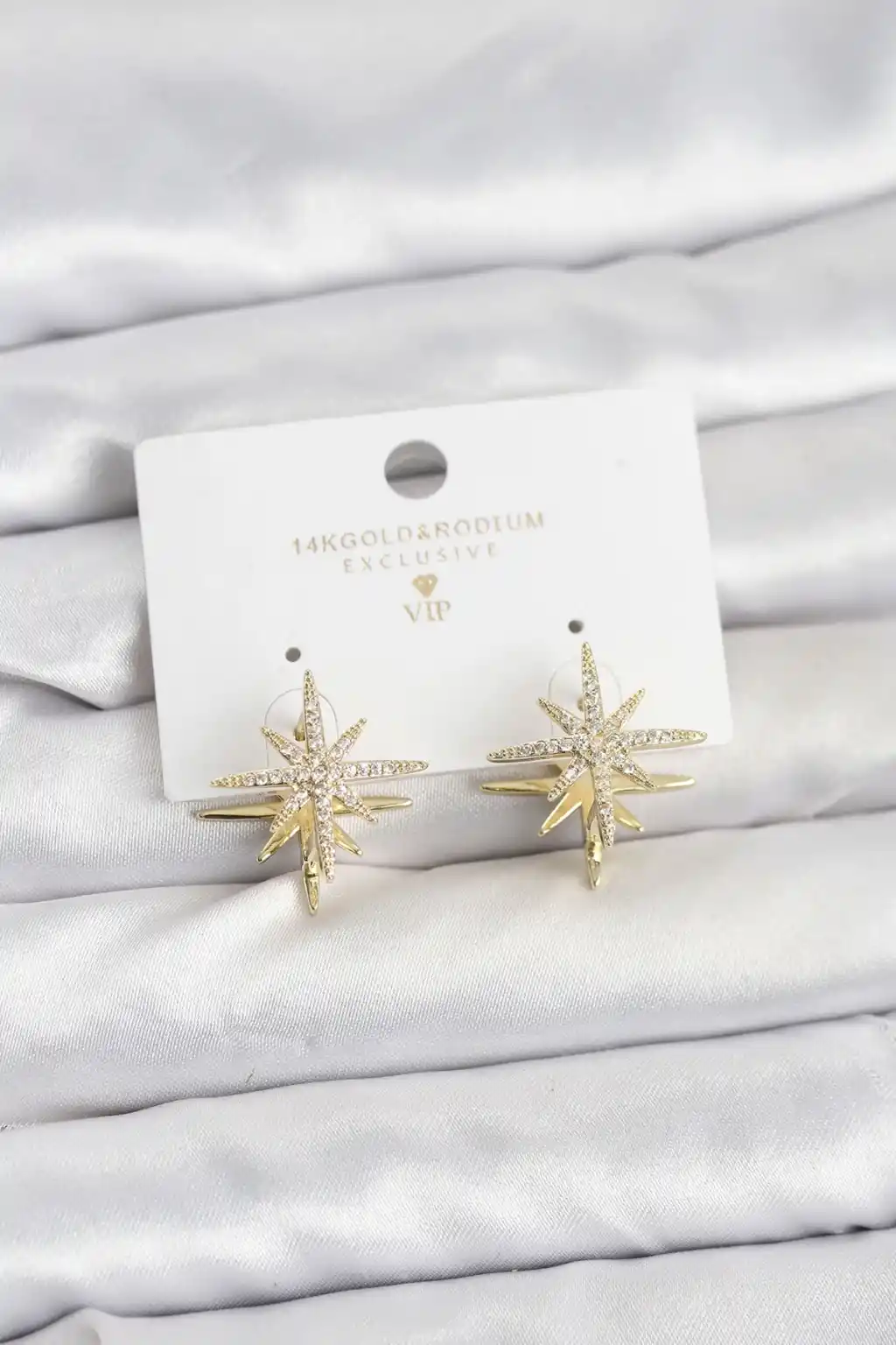 Gold Renk Pirinç Çift Taraflı Kutup Yıldızı Kadın Küpe