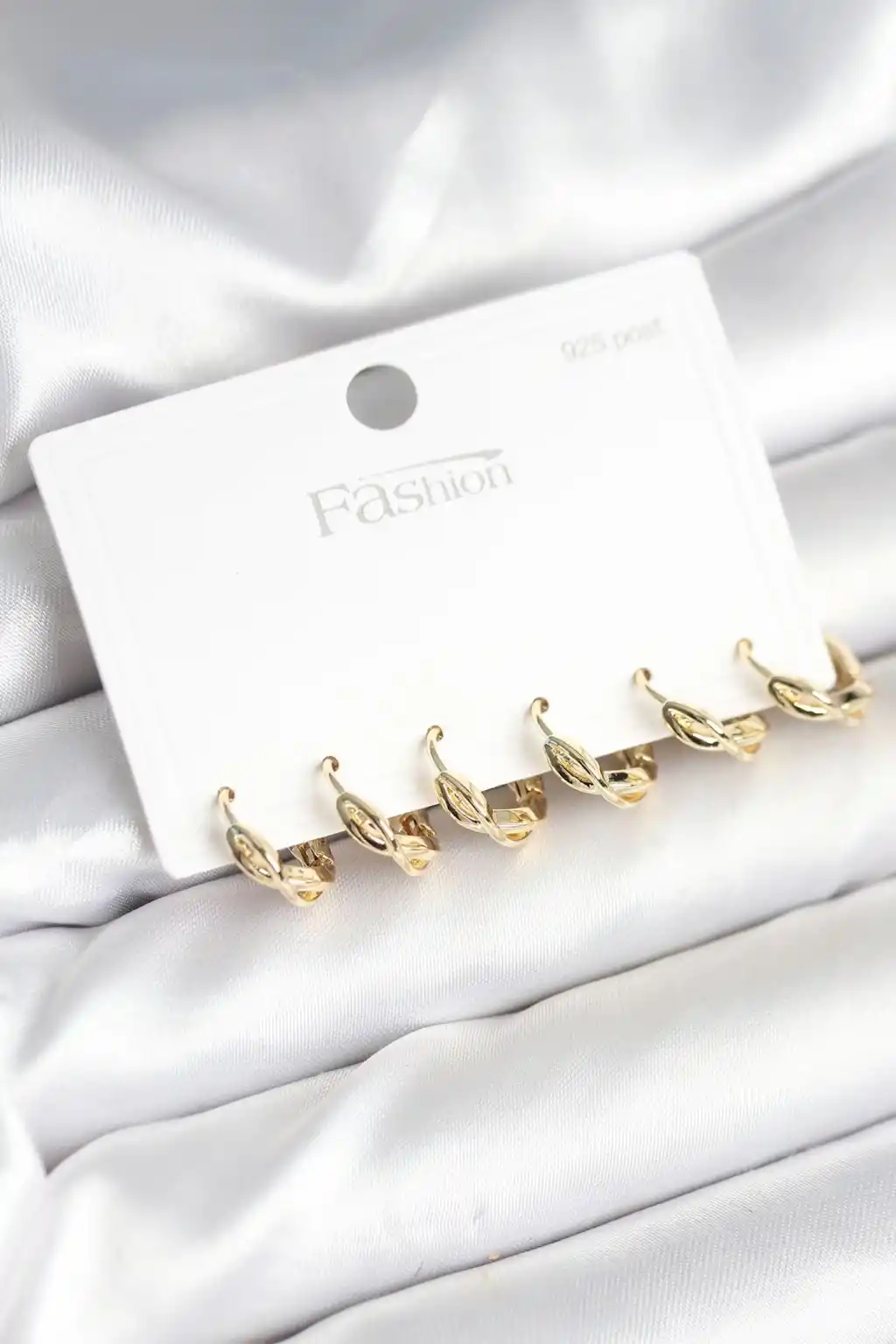 Gold Renk Pirinç Sarmal Model 925 Ayar Gümüş Çivili Kadın Küpe Seti
