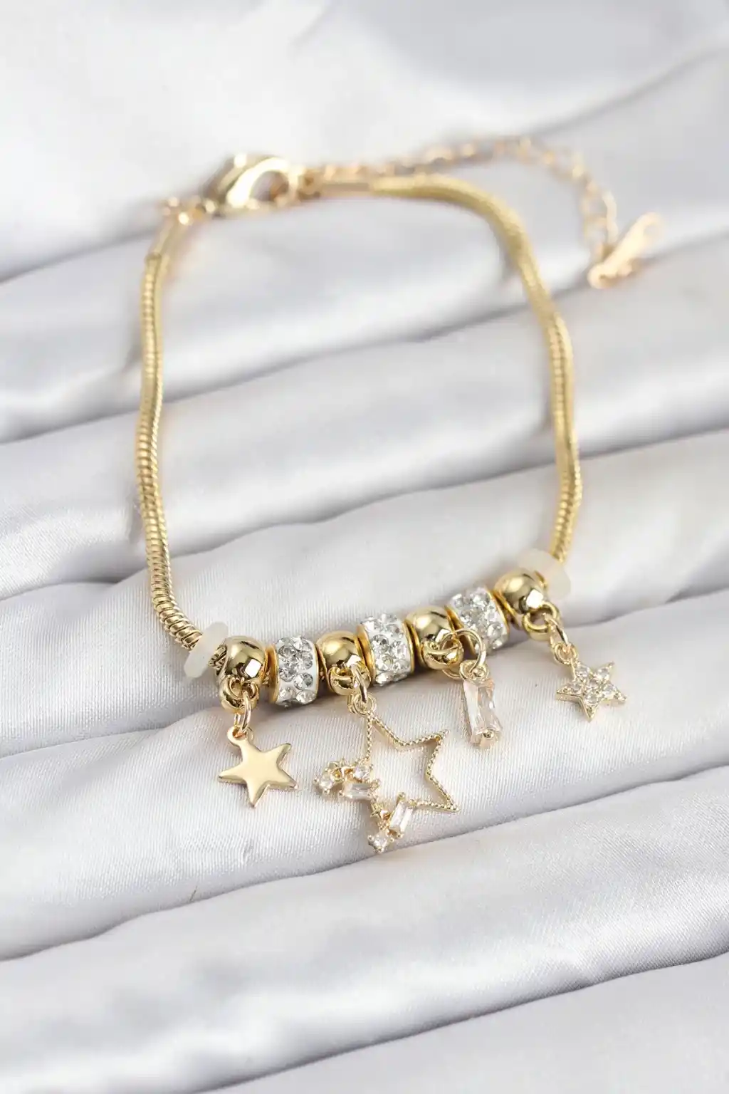 Gold Renk Pirinç Yıldız Model Charmlı Kadın Bileklik