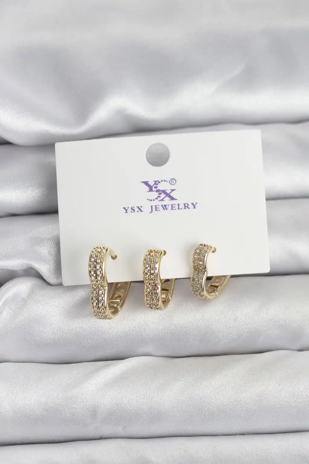 Gold Renk Pirinç Zirkon Taşlı Kalpli Kadın Küpe