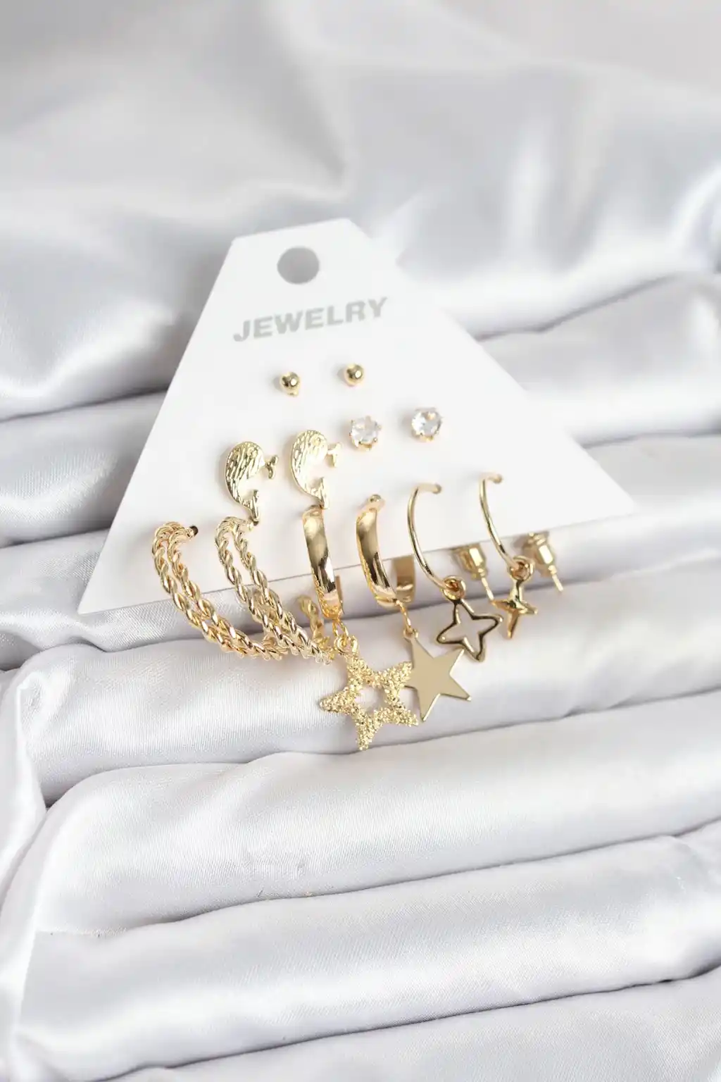 Gold Renk Yıldızlı Set 6 Çift Kadın Küpe Seti