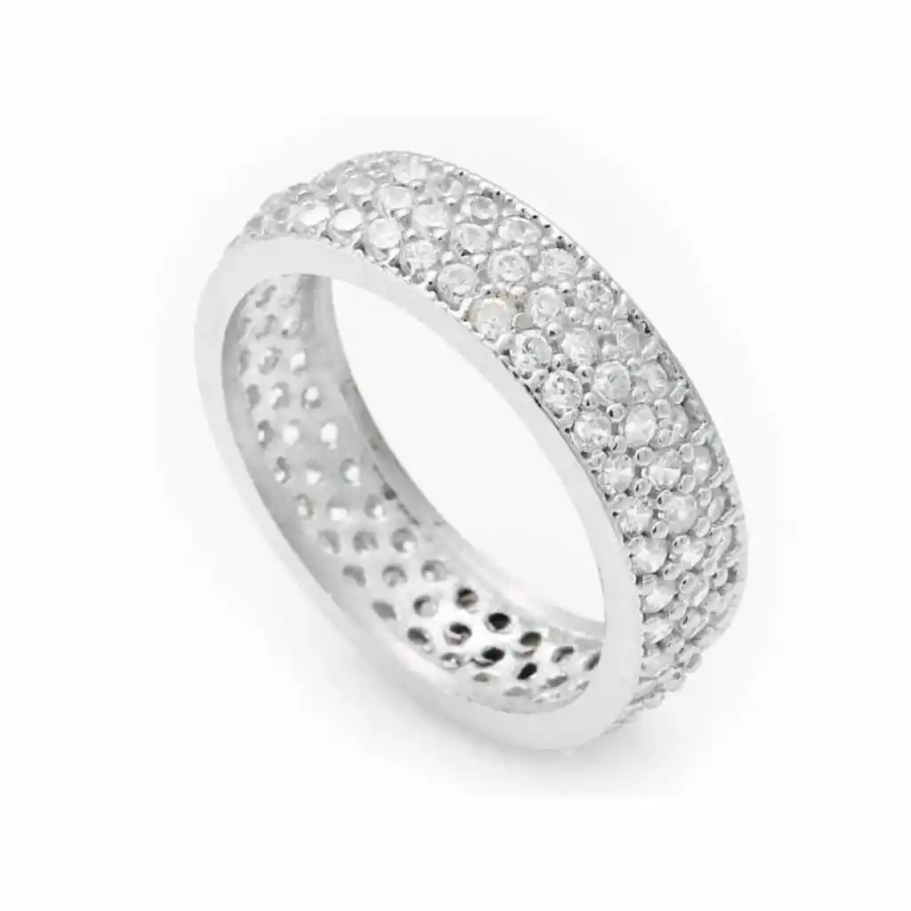 Gümüş 3 Sıra Beyaz Tamtur Bayan Alyans Yüzük