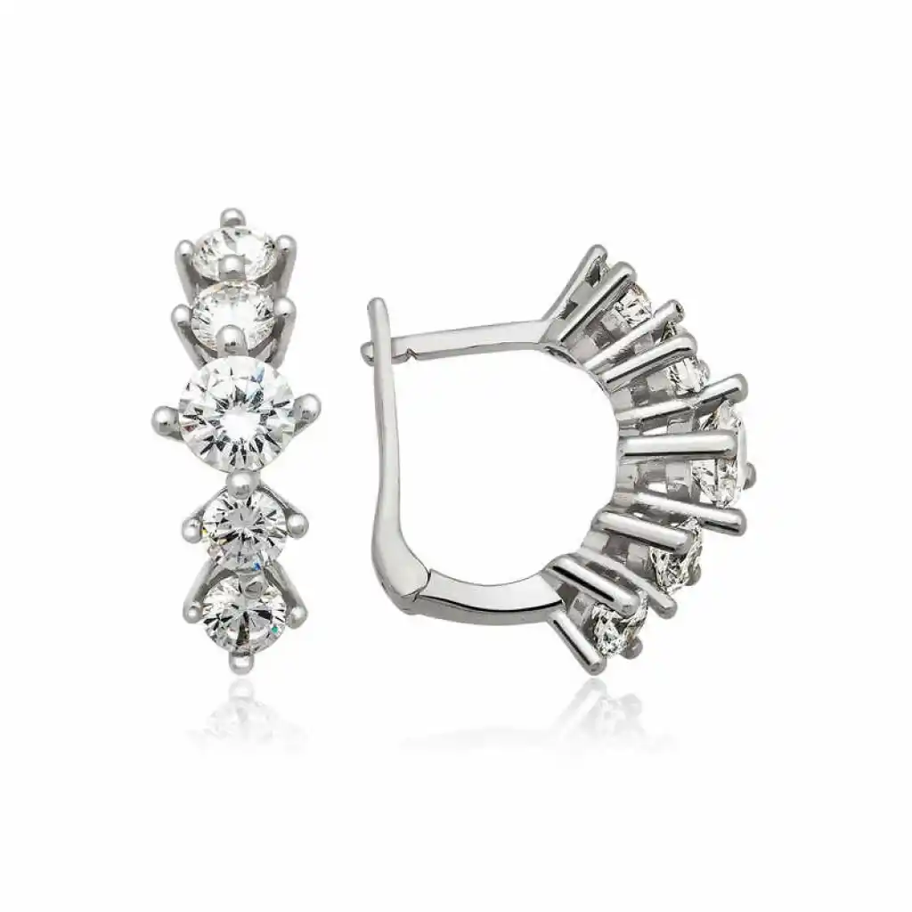 Beş taş modeller oldukça gösterişli takılardır. Çok taşlı küpeler arasında en çok tercih edilen modellerden biridir. Her bir taşının anlamı vardır. Genelde aşk, sadakat, huzur, mutluluk ve bereketi temsil ederler. İlişkinizin beşinci yılı için biçilmiş bir kaftandır. Yıl dönümü, sevgililer günü, doğum günü gibi özel günler için en uygun hediyeyi arayanlar ve beş taş küpe zarafetini yaşamak isteyenler için eşsiz modeller sizi bekliyor. Beş taş bayan küpe modeli 925 ayar gümüşten imal edilmiştir. Gümüş üzerine rodyum kaplama yapılmıştır. Rodyum kaplama yapılan gümüş beş taş küpe modelleri parlaklığını uzun süre muhafaza eder, oksitlenmesi gecikir. Küpe üzerinde bulunan beyaz taşlar zirkondur. Gümüş bayan küpe modellerinin tamamı el emeği ile üretilmiştir. Gümüş ve değerli taşlar nedeniyle belirtilen ortalama ürün ağırlığında ± %10 sapma olabilmektedir.