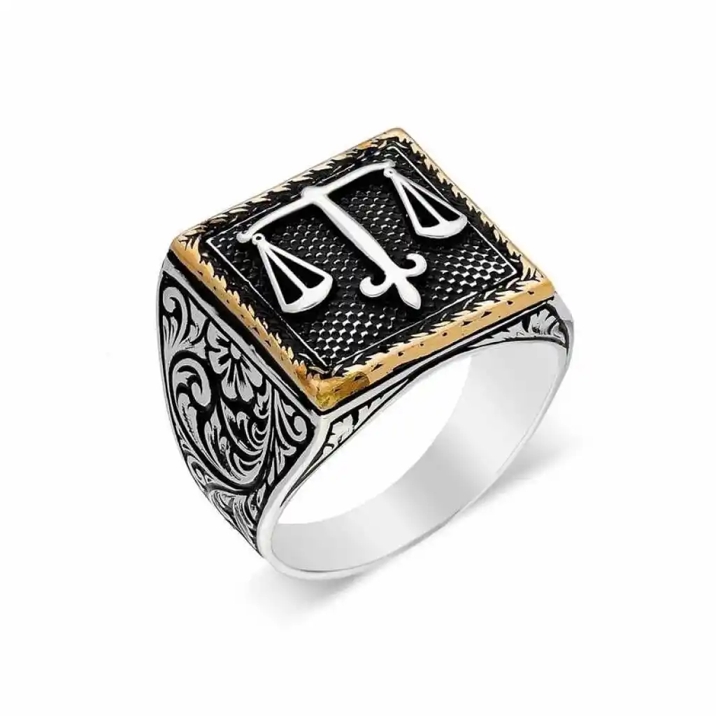 Gümüş Adalet Terazisi Erkek Yüzük