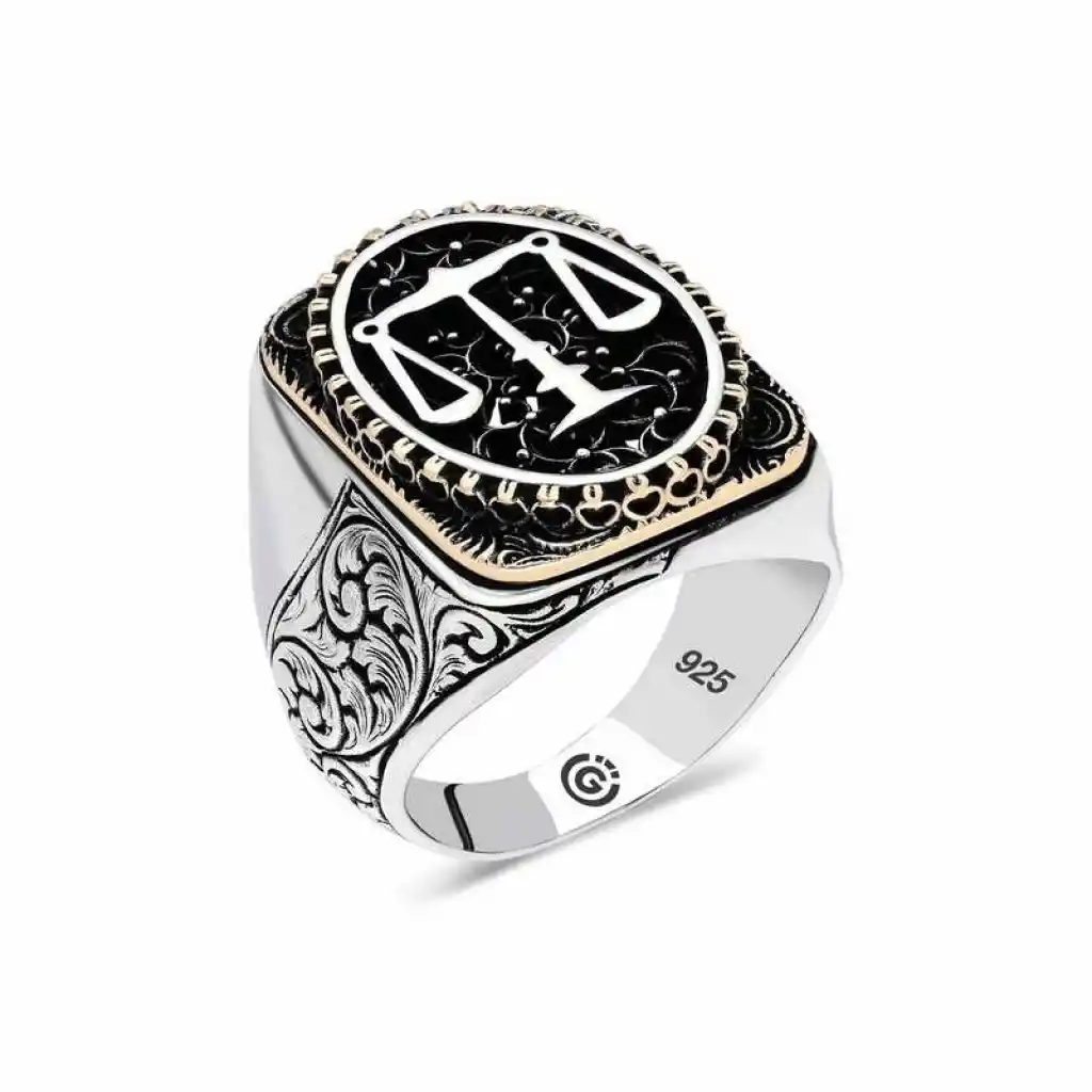 Gümüş Adalet Terazisi Oval Erkek Yüzük