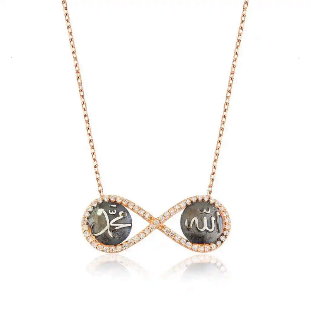 Gümüş Allah Muhammed Yazılı Sonsuzluk Kolye