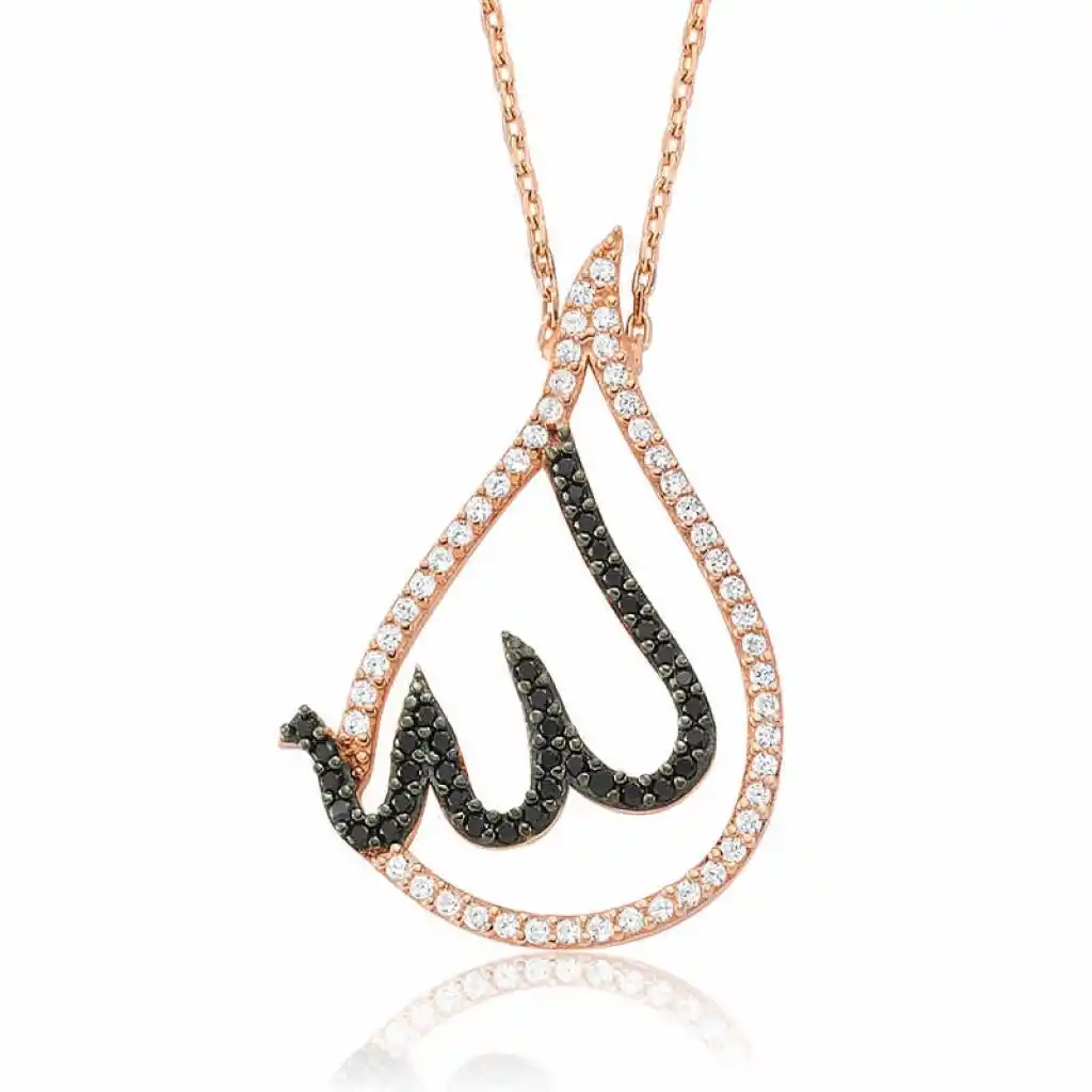 İnancını üzerinde taşımak isteyenlerin günlük hayatta yanlarından ayırmayacakları özel bir aksesuar olan bu şık kolye modeli manevi duyguları ifade etmenin anlamlı bir yolu olacaktır. Bu harika tasarım kolye size ve sevdiklerinize huzur verecek. Üzerinde arapça Allah yazılı bayan kolye 925 ayar gümüşten imal edilmiştir. Gümüş üzerine rose altın kaplama yapılmıştır. Rose altın kaplama yapılan gümüş bayan kolye modelleri parlaklığını uzun süre muhafaza eder ve oksitlenmesi gecikir. Kolye üzerinde bulunan taşlar zirkondur. Gümüş olan zincir boyu ortalama 45 cm"dir. Tüm gümüş bayan kolye modellerinde olduğu gibi gümüş Allah yazılı bayan kolye de el emeği ile üretilmiştir. Gümüş ve değerli taşlar nedeniyle belirtilen ürün ağırlığında ± %10 sapma olabilmektedir.