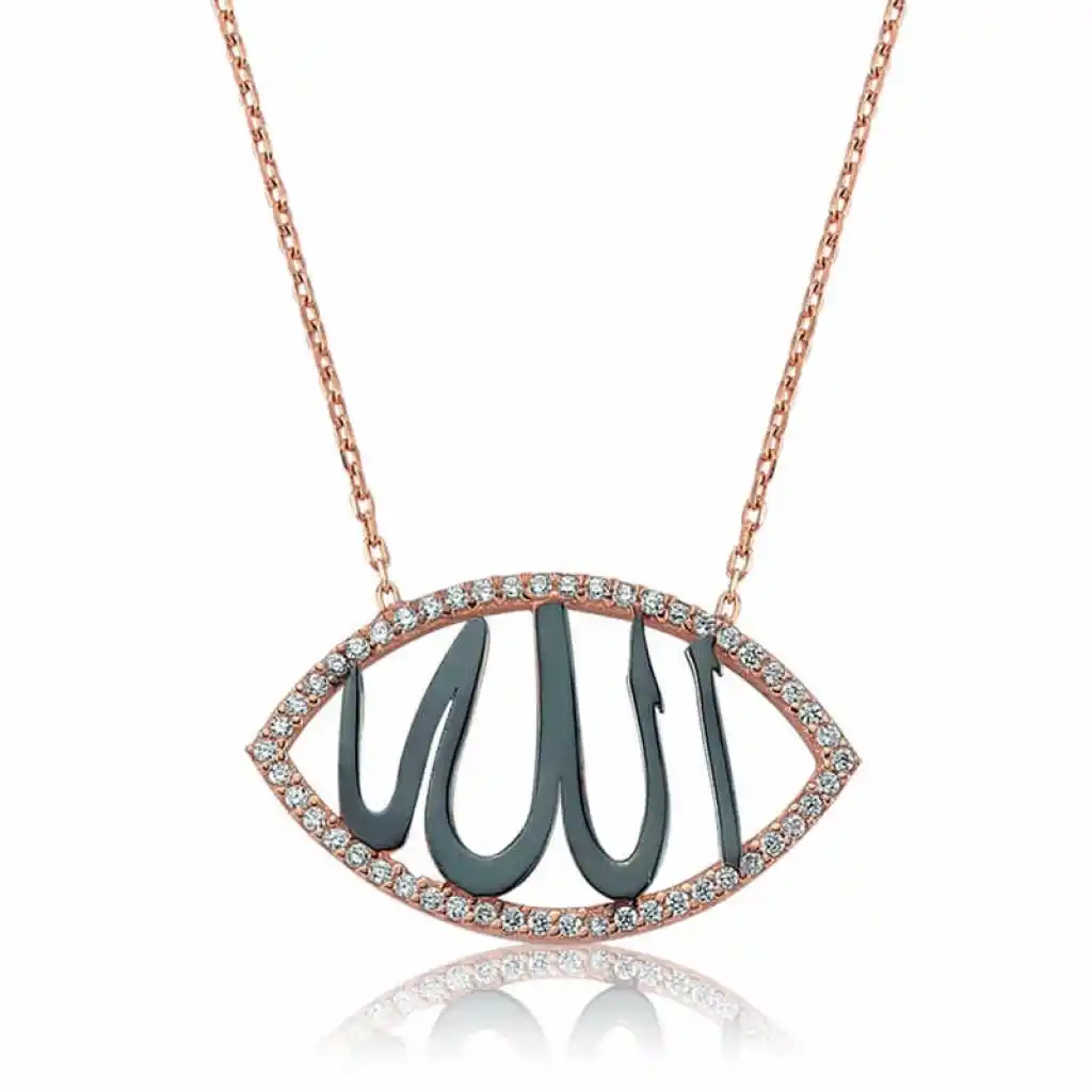 İnancını üzerinde taşımak isteyenlerin günlük hayatta yanlarından ayırmayacakları özel bir aksesuar olan bu şık kolye modeli manevi duyguları ifade etmenin anlamlı bir yolu olacaktır. Bu harika tasarım kolye size ve sevdiklerinize huzur verecek. Üzerinde arapça Allah yazılı bayan kolye 925 ayar gümüşten imal edilmiştir. Gümüş üzerine rose altın kaplama yapılmıştır. Rose altın kaplama yapılan gümüş bayan kolye modelleri parlaklığını uzun süre muhafaza eder ve oksitlenmesi gecikir. Kolye üzerinde bulunan taşlar zirkondur. Gümüş olan zincir boyu ortalama 45 cm"dir. Tüm gümüş bayan kolye modellerinde olduğu gibi gümüş Allah yazılı bayan kolye de el emeği ile üretilmiştir. Gümüş ve değerli taşlar nedeniyle belirtilen ürün ağırlığında ± %10 sapma olabilmektedir.