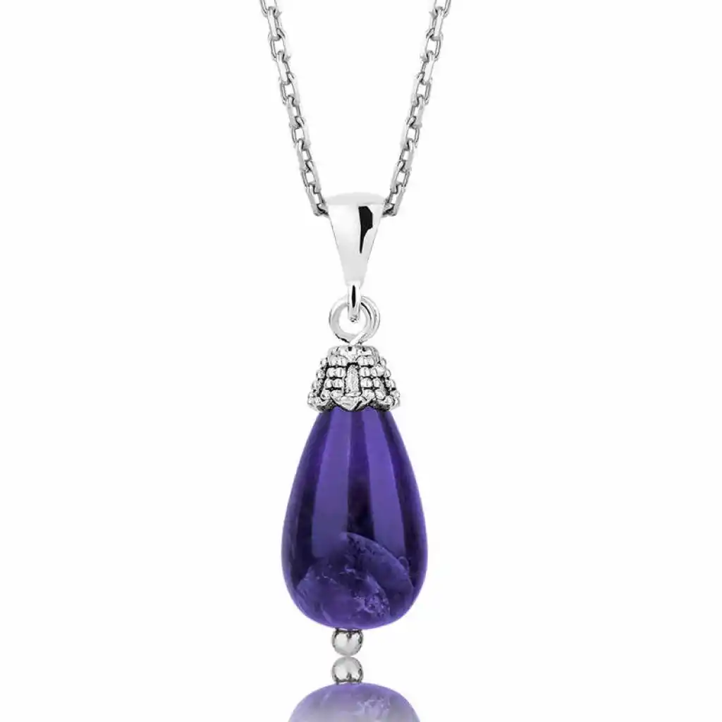Gümüş Ametist Taşlı Bayan Kolye