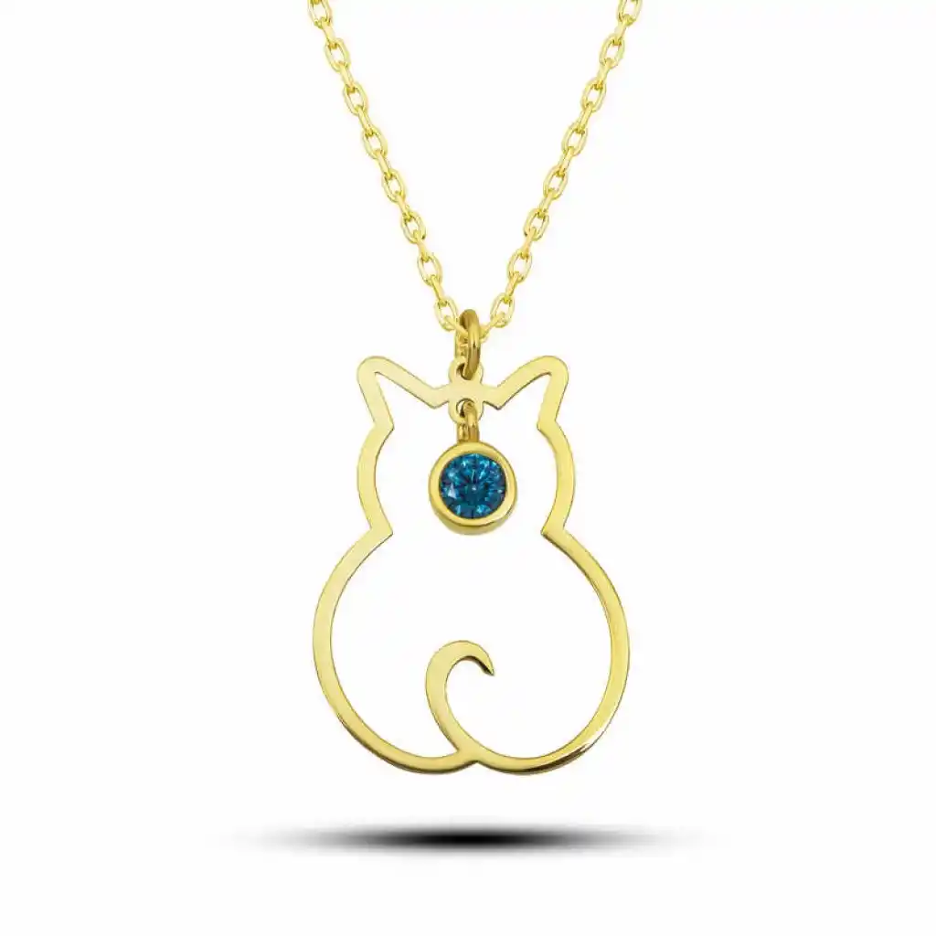 Her bir doğum taşı, belli bir ayla özdeşleşmiştir. Turkuaz aralık ayının burç taşıdır. Rengi mavi-yeşildir. Şans taşı olarak bilinen turkuazın bir diğer ismi de firuze taşıdır. Nazara karşı iyi geldiğine inanılan taş eşsiz rengi nedeniyle oldukça binlerce yıldır takı ve süs eşyası olarak kullanılmaktadır. Bilinci geliştirdiğine inanılan taşın tansiyona ve kalp hastalıklarına iyi geldiği söylenmektedir. Ayrıca konuşma ve yazı yoluyla ifade gücünü arttırdığına inanılmaktadır. Evlerimizin sevimli neşe kaynağı kediler, temiz olmalarının yanı sıra masumiyetin simgesidir. Asil ve mantıklı bir kişiliğe, mükemmel sezgilere ve akılcı bir duyarlılığa sahiptirler. Özel günlerin en tercih edilen hediye seçeneklerinden olan gümüş takılar, sevdiklerini mutlu etmek ve onlara her an yanlarında taşıyabilecekleri bir hediye vermek isteyenler için tasarlandı. Masumiyetin simgesi olan kedi figürlü gümüş kolye modelini kız kardeşinize, sevgilinize ya da arkadaşlarınıza armağan edebilirsiniz. Turkuaz taşlı kedi kadın kolye modeli 925 ayar gümüşten imal edilmiştir. Gümüş üzerine gold kaplama yapılmıştır. Gold kaplama yapılan gümüş kedi kolye modelleri parlaklığını uzun süre muhafaza eder ve oksitlenmesi gecikir. Kolye üzerinde bulunan tüm taş turkuazdır. Gümüş olan zincir boyu ortalama 45 cm"dir. Gümüş kadın kedi kolye diğer tüm gümüş kadın kolye modellerinde olduğu gibi el emeği ile üretilmiştir. Gümüş ve değerli taşlar nedeniyle belirtilen ortalama ürün ağırlığında ± %10 sapma olabilmektedir.